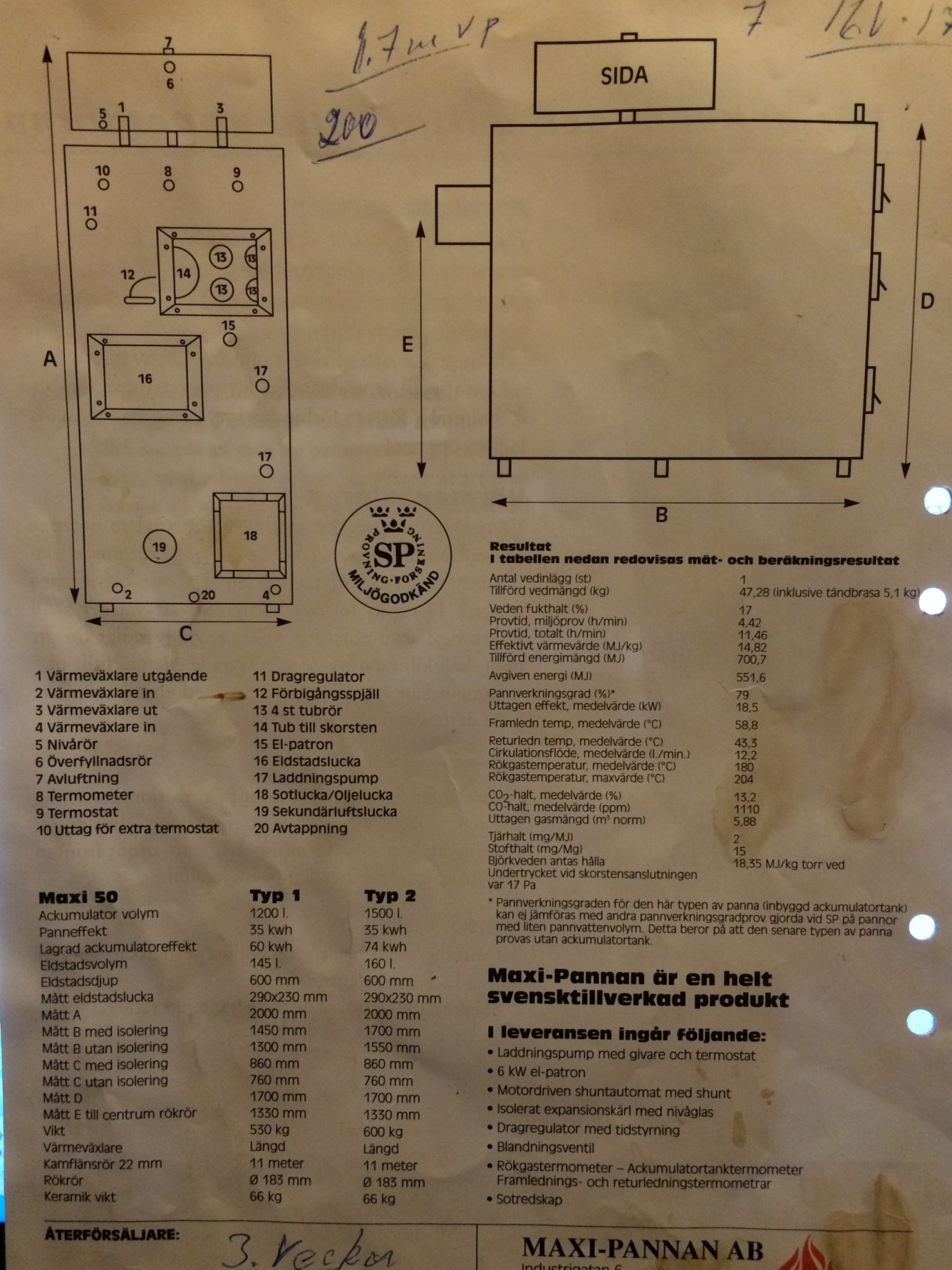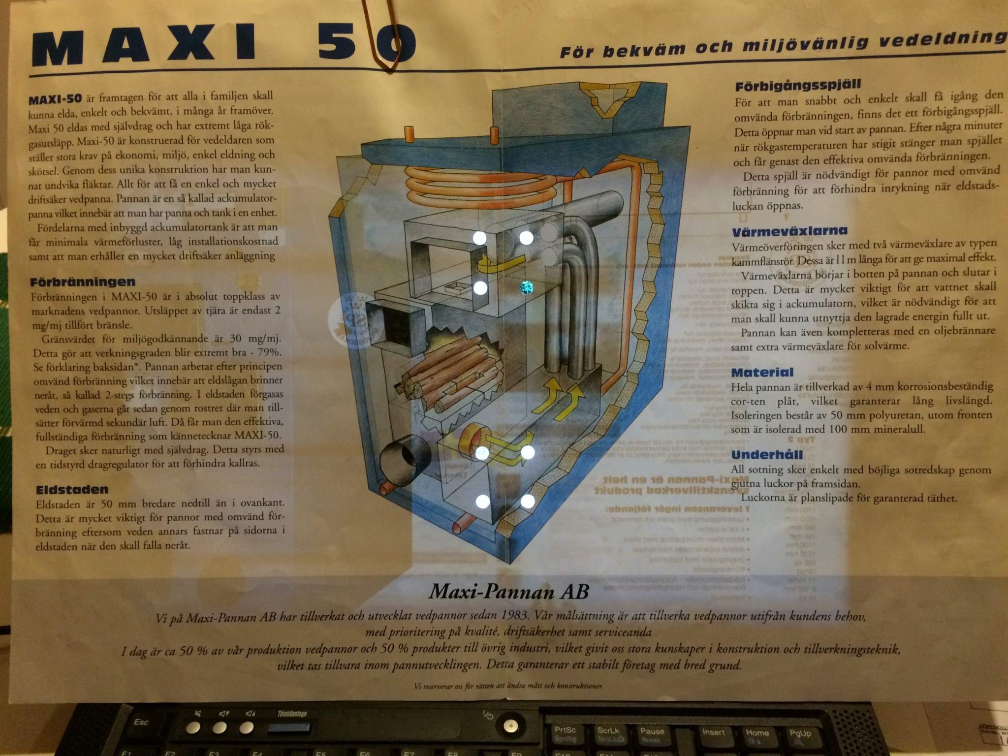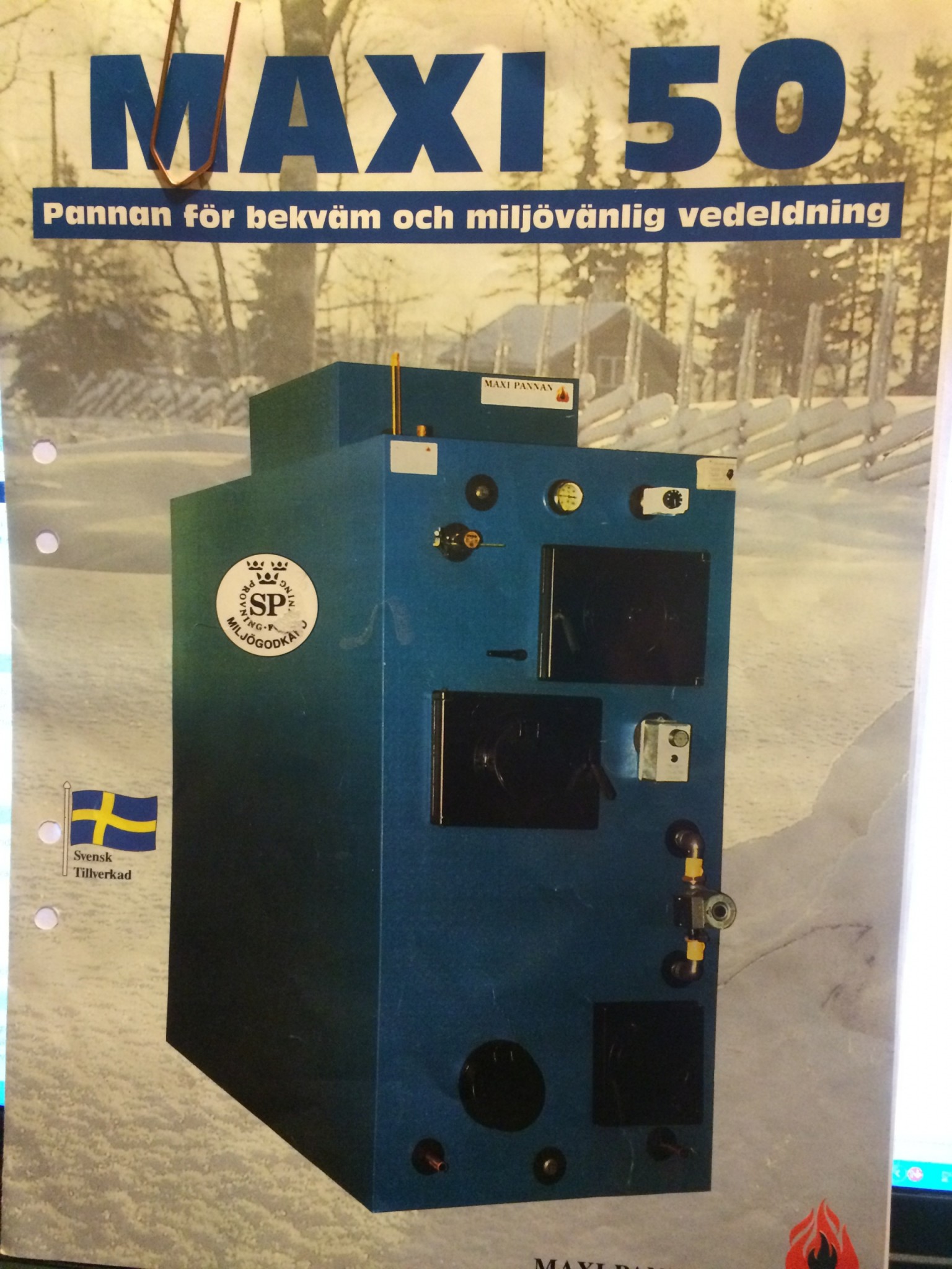 Lägger in några bilder på pannan från broschyren samt nån bild när den var i drift hos förra ägaren.
