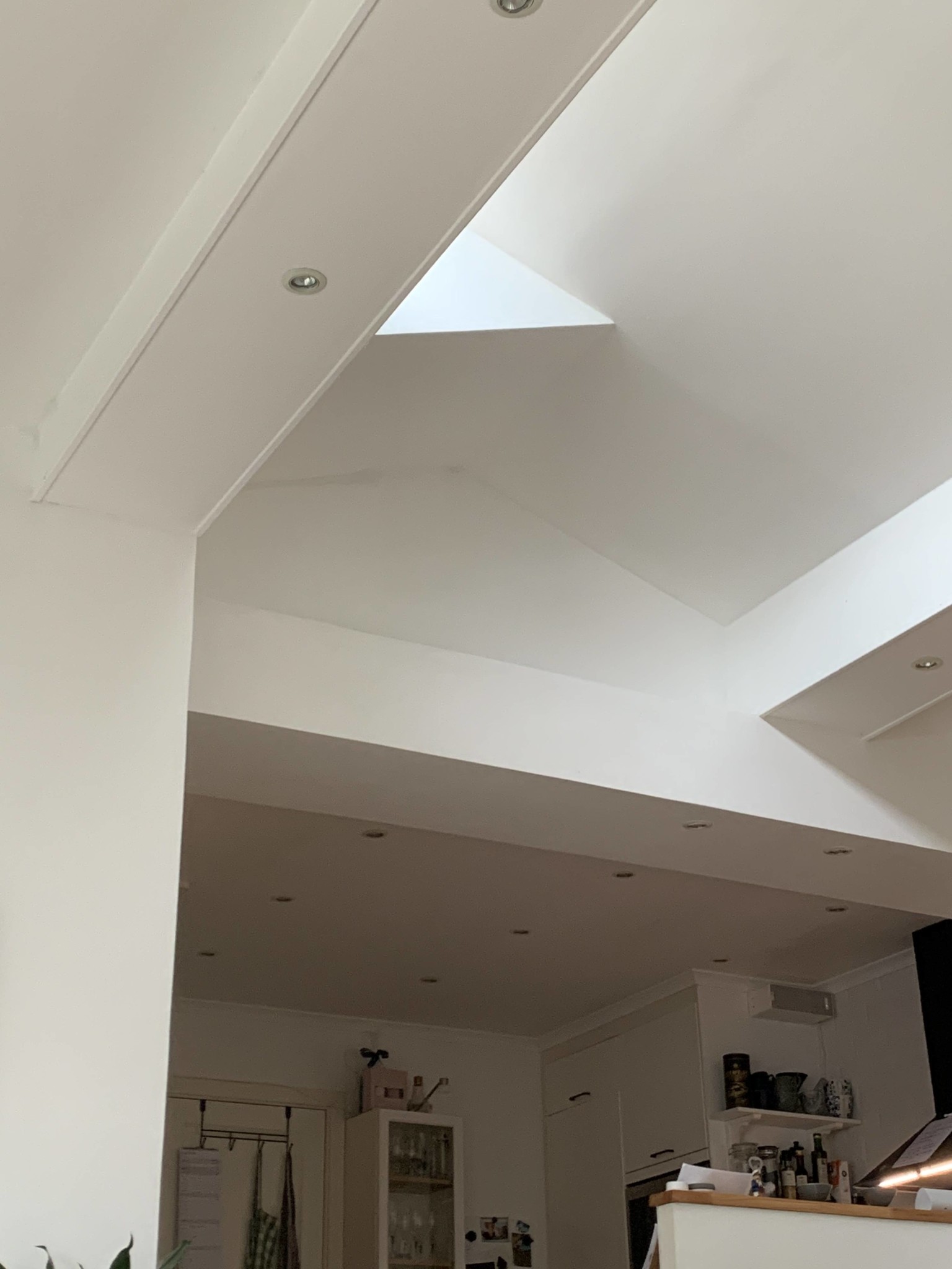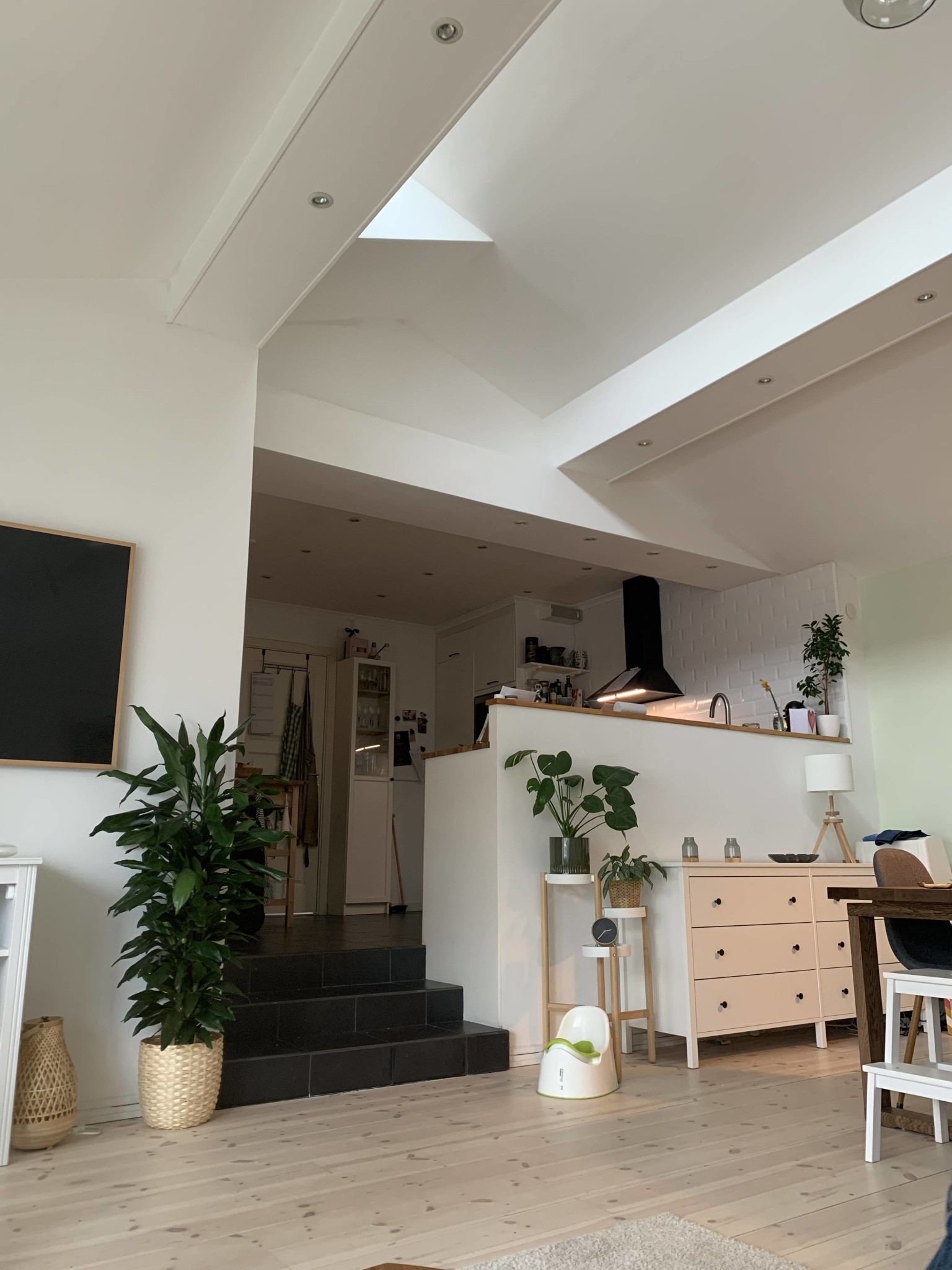 Har ett vardagsrum med en takhöjd på 4,5 meter med ett utrymme i taknock som ej används. Samlar enbart damm. Djupet är cirka 25 cm.