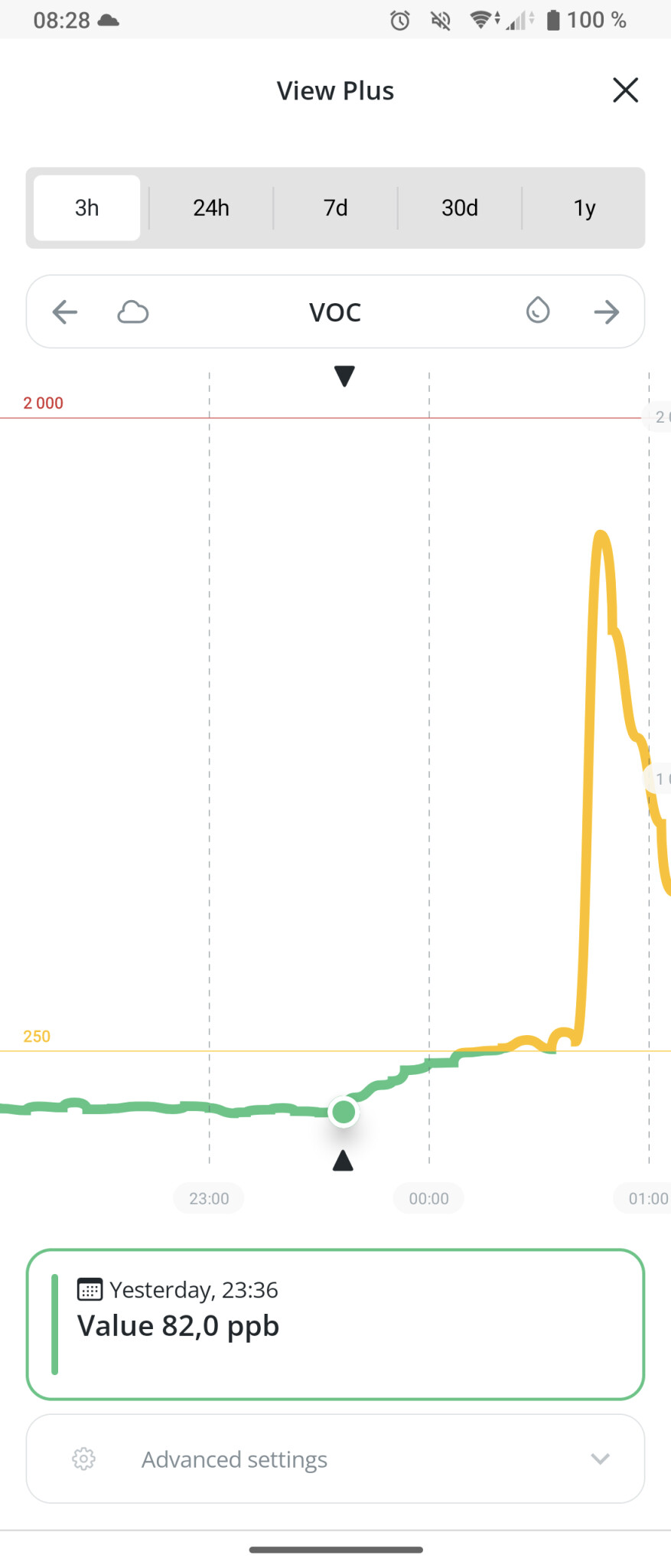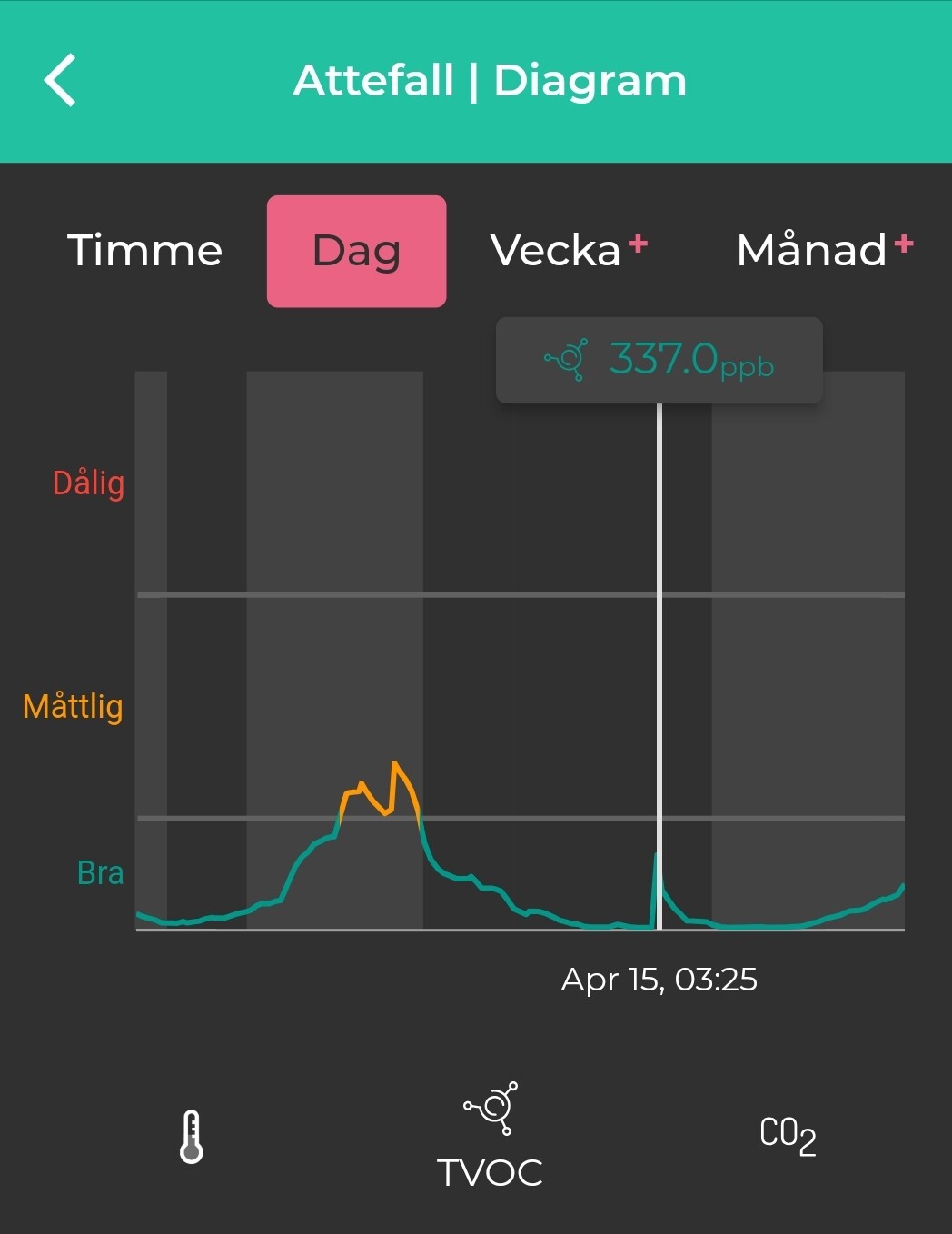 Uppenbarligen är det människor som skapar "VOC" här, ställde tillbaka mätaren i vårt sovrum där frugan ligger, vilket syns direkt...