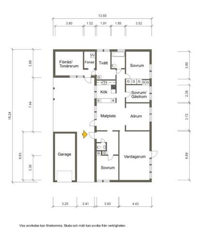 Bilden visar nuvarande kök. Den del som går vinkelrätt ut från långsidan består av både över och underskåp vilket för mig blir väldigt instängt. Jag strävar efter att ha en så öppen planlösning som det bara går.