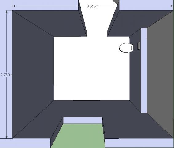 Vi har inte ens kommit överens om det skall vara ett badkar, jacuzzi eller dush i rummet.. men det lutar just nu åt en "trekantig" jacuzzi i vänster hörna där fönstret står, då dushhörna skulle bli för bred (90 cm från hörnan till fönster).