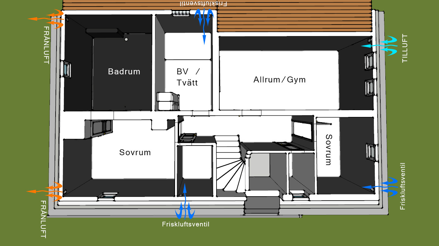 Vardagsrummet samt stora sovrummet kommer få tilluft.