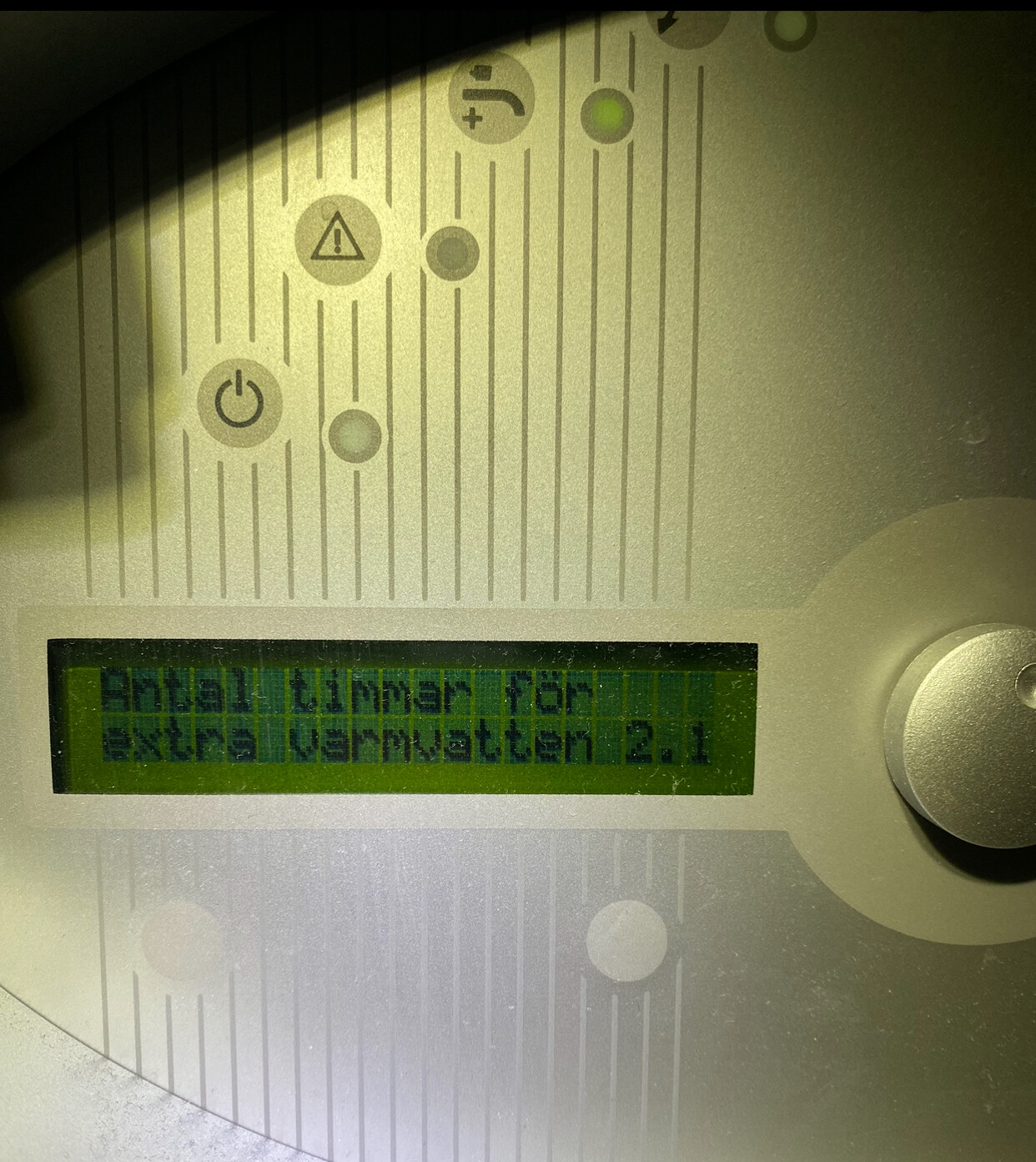 Ställer in 2 timmar Extra varmvatten och sen är båda duscharna igång men efter en stund 10-15 min kallnar vattnet.
