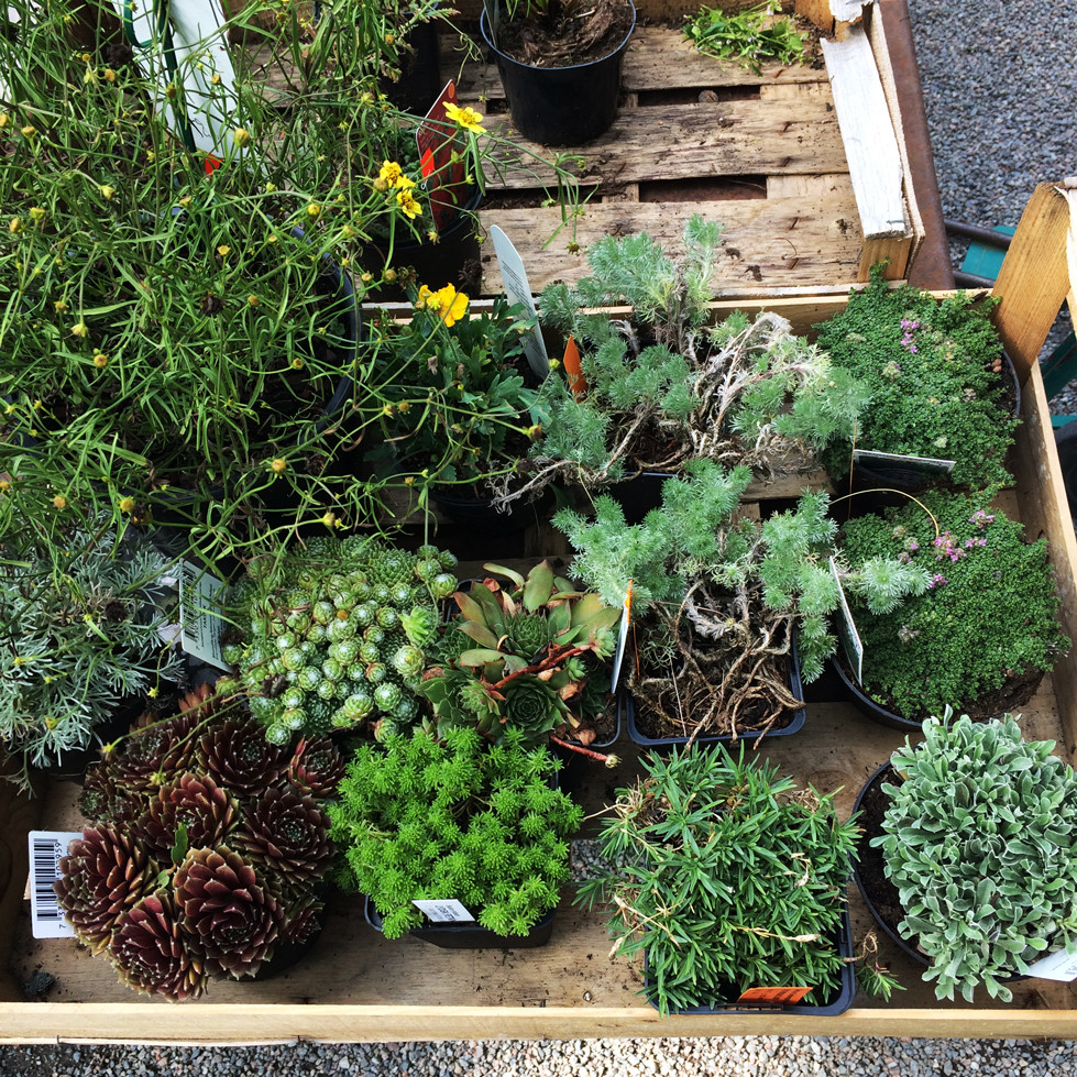 I förmiddags besökte jag (den underbara) handelsträdgården Zetas i Stockholm för att fylla på med nya, gröna vänner till enarna. Förhoppningen är att få ett täcke av blandade härligheter under enarna. Här ser vi gänget i sin resväska.