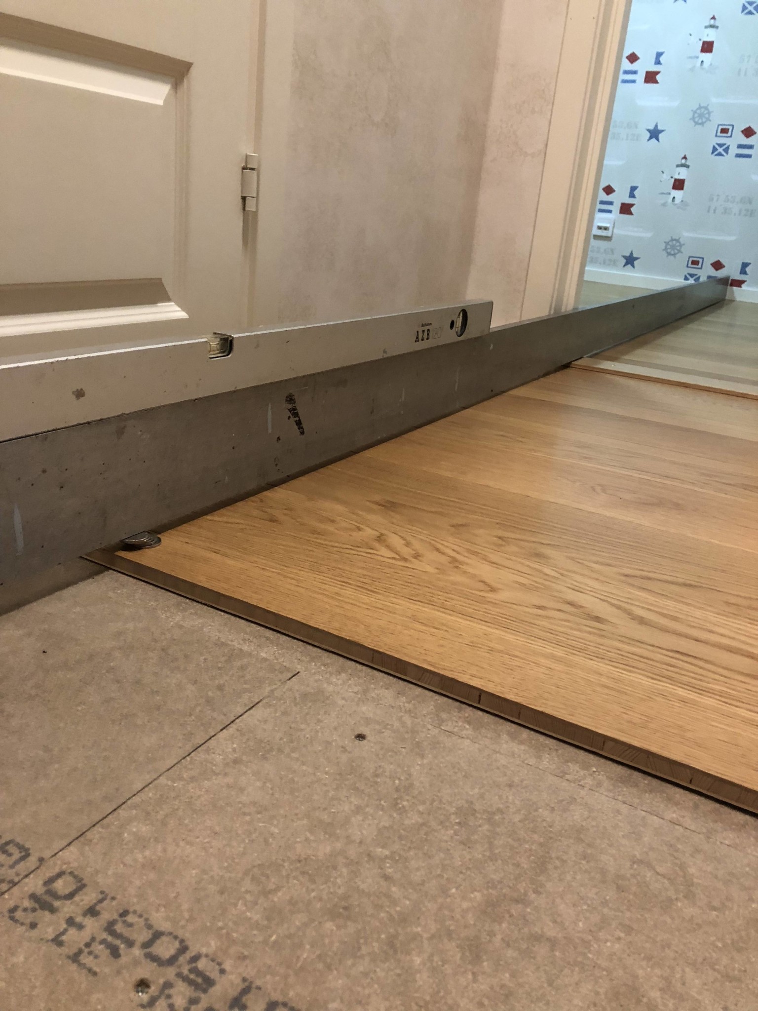 Som ni ser på bilderna tagna i min hall behöver jag få upp undergolvet i samma nivå som rät skivan, den vilar i andra ändan på ett golv i rätt höjd.
