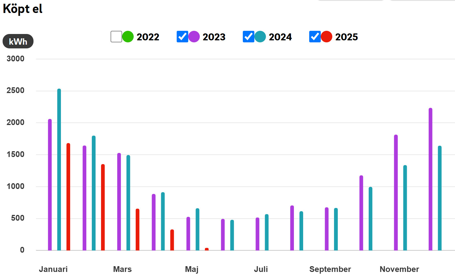Jag förstår inte hur det kan vara så. Då måste du ha ändrat något annat också! (effektiviserat/minska hemmets förbrukning ELLER installerat fler paneler)D djac skrev: