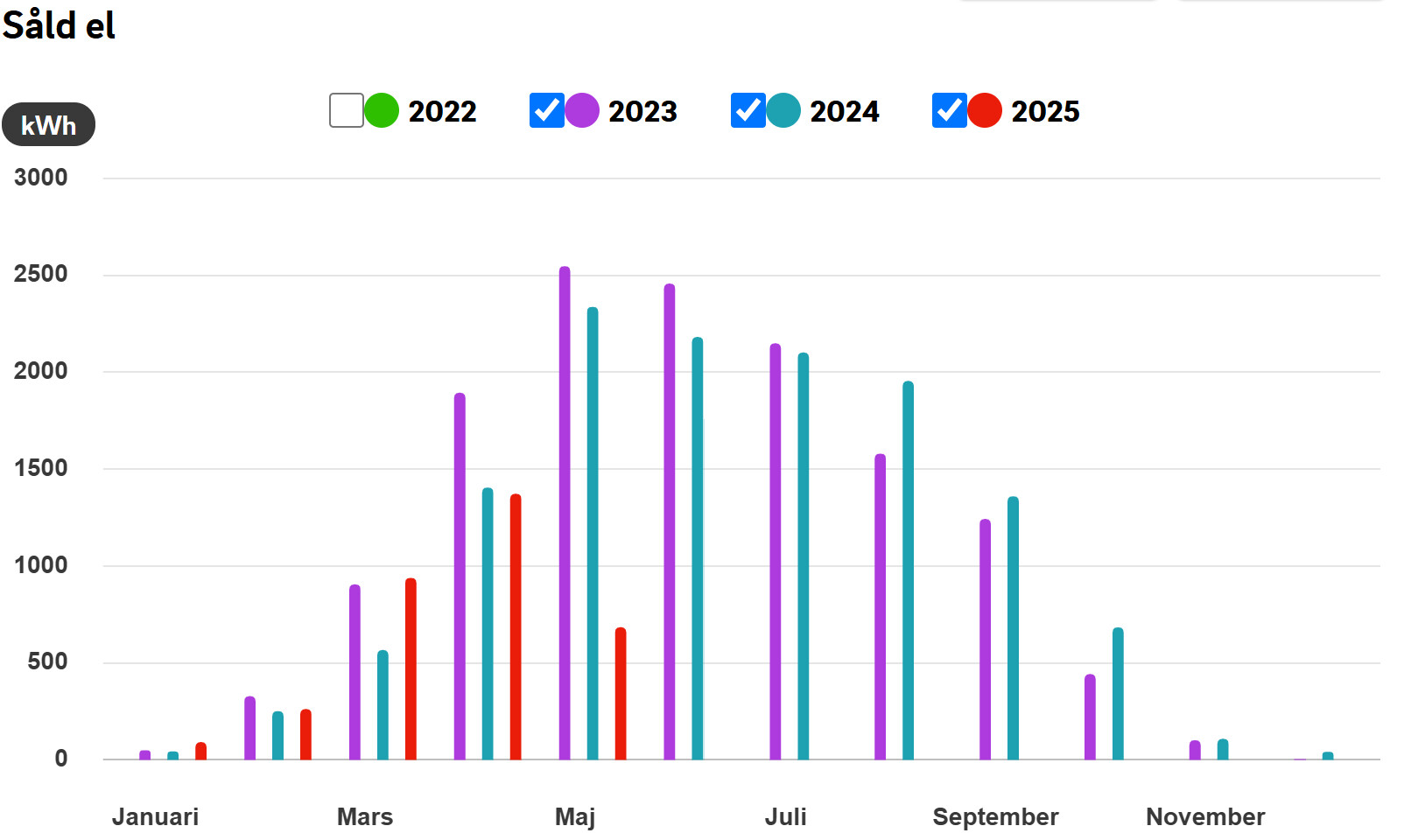 men batteriet förflyttar bara solen, iofs har det producerats mer nu jämfört med föra året. Om ej gjort andra förändringar på din förbrukning.D djac skrev:60-öringen är villkorad och man får det bara för lika många kWh som man köper, sen jag fick batteri så köper jag mindre än jag exporterar och kommer därför inte få denna för allt.