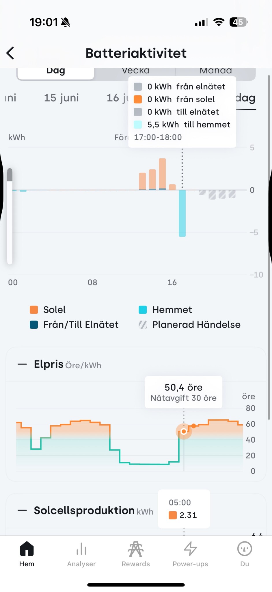 Kan du dubbelkolla hur förbrukningen ser ut de timmarna? (Har allt gått till hem, kan ses i vanliga pulse). Det kan se ut så här om ct klämma är felkopplade/inställd.W wimpyfudge skrev: