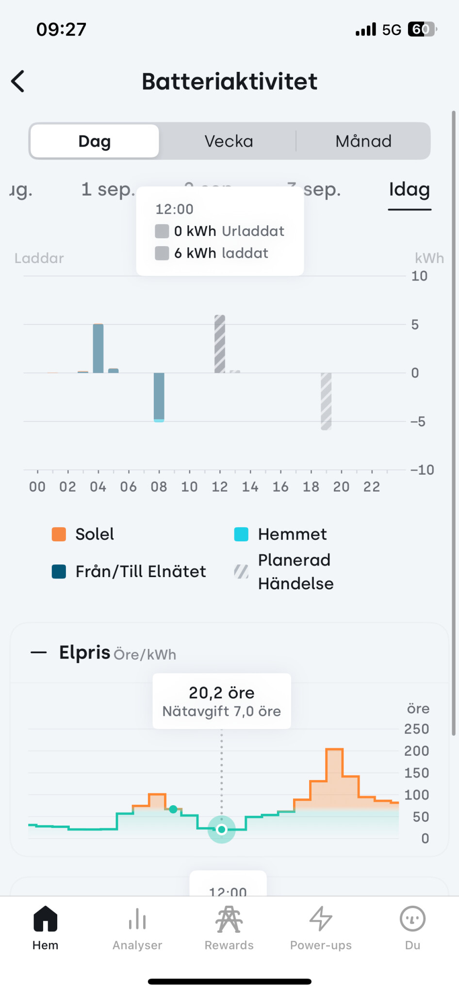 För mig har testfas 1 (åtm hittills) inneburit inladdning på 5000w… gått från 40% i SoC till 50% so far.