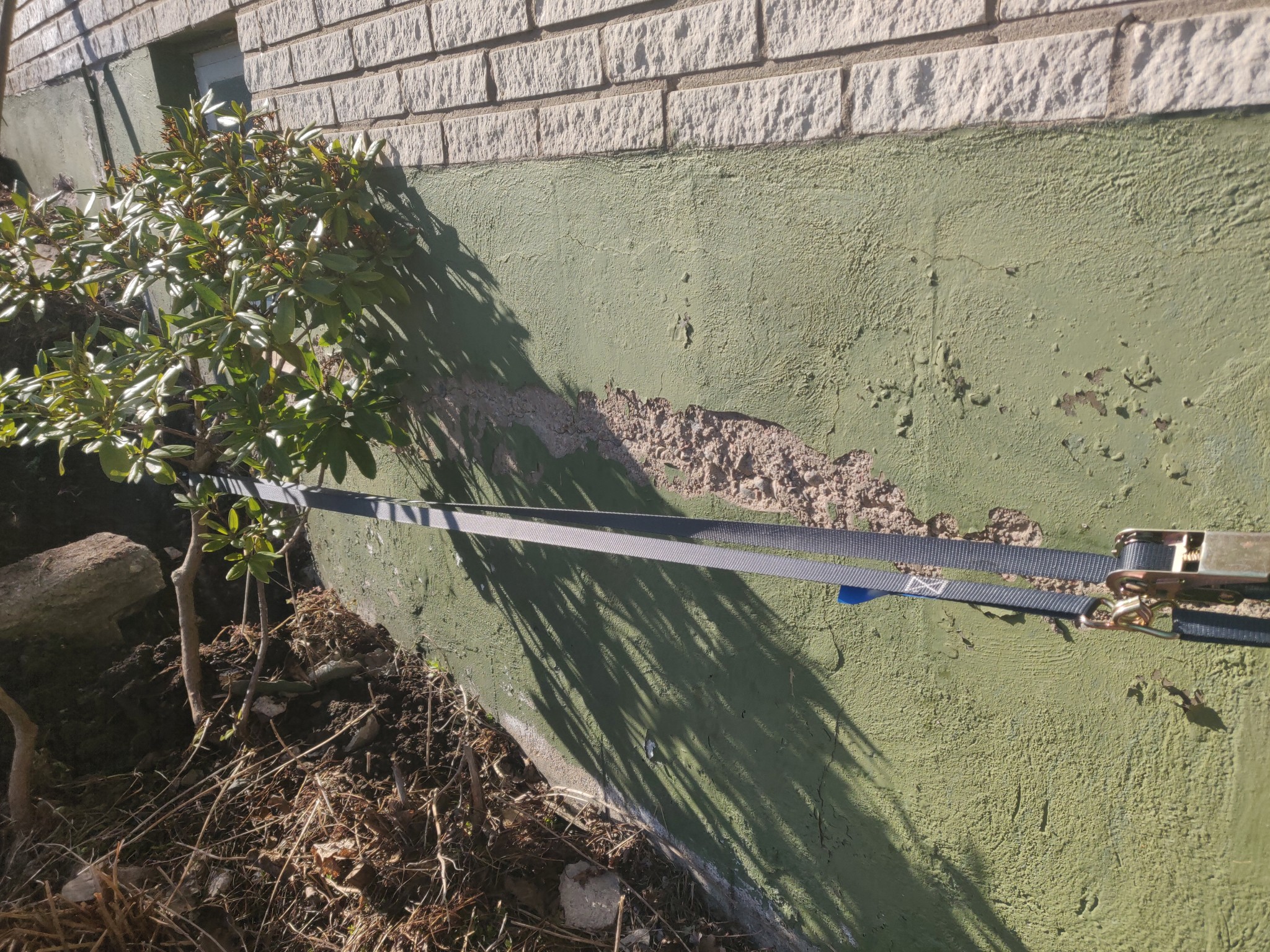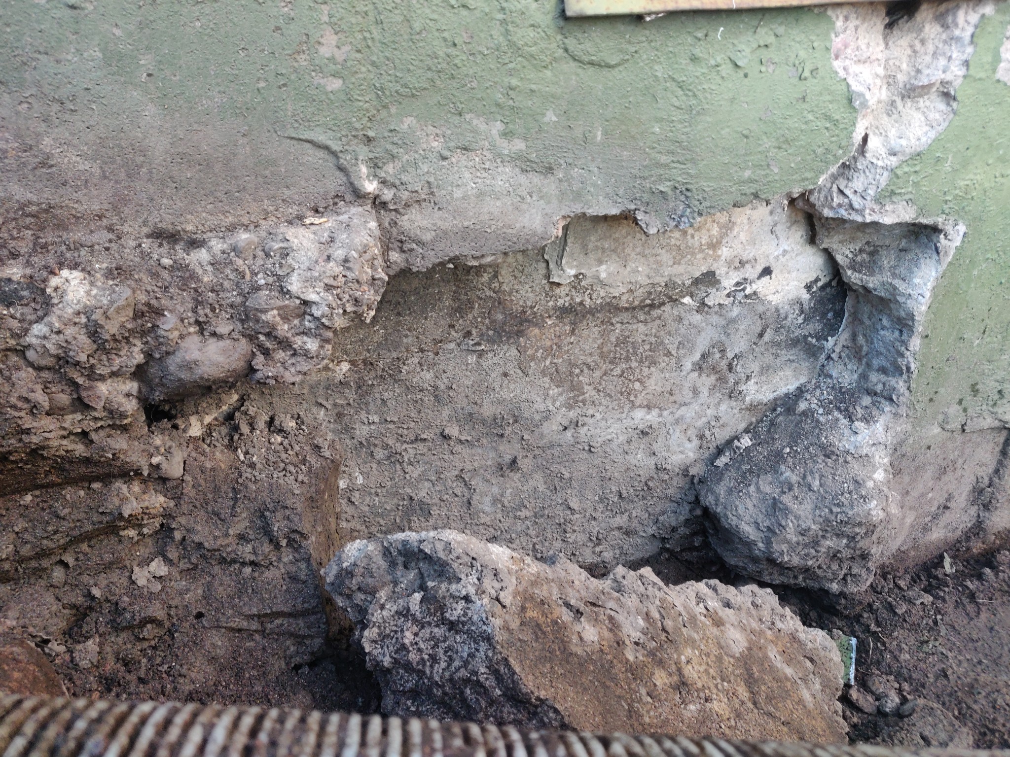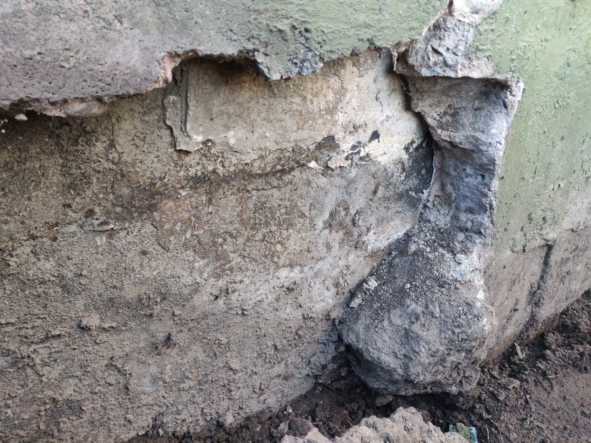 Grundmuren har spruckit med en tydlig horisontell spricka om ca 3-4meter.