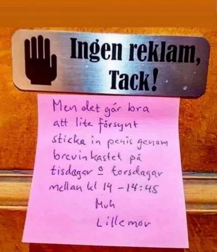 HasseTeknik skrev: [bild] ( stulet från FB ) Sitter frugan och änger över axeln så du var tvungen att säkerställa att hon inte trodde det var allvarligt menat? 😉