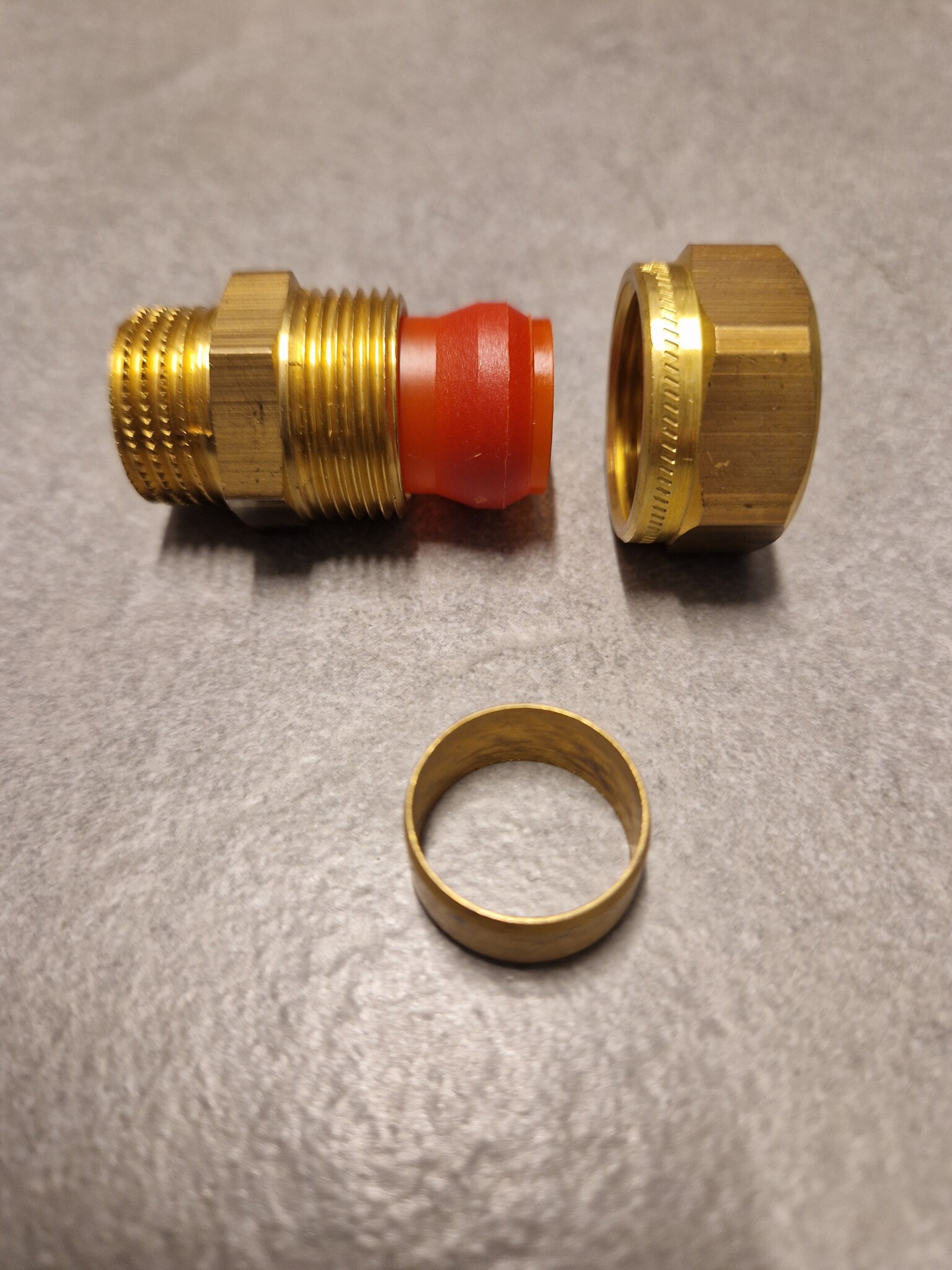 Nu tog jag bara en koppling jag hade liggandes, det blev rörgänga<->klämring.