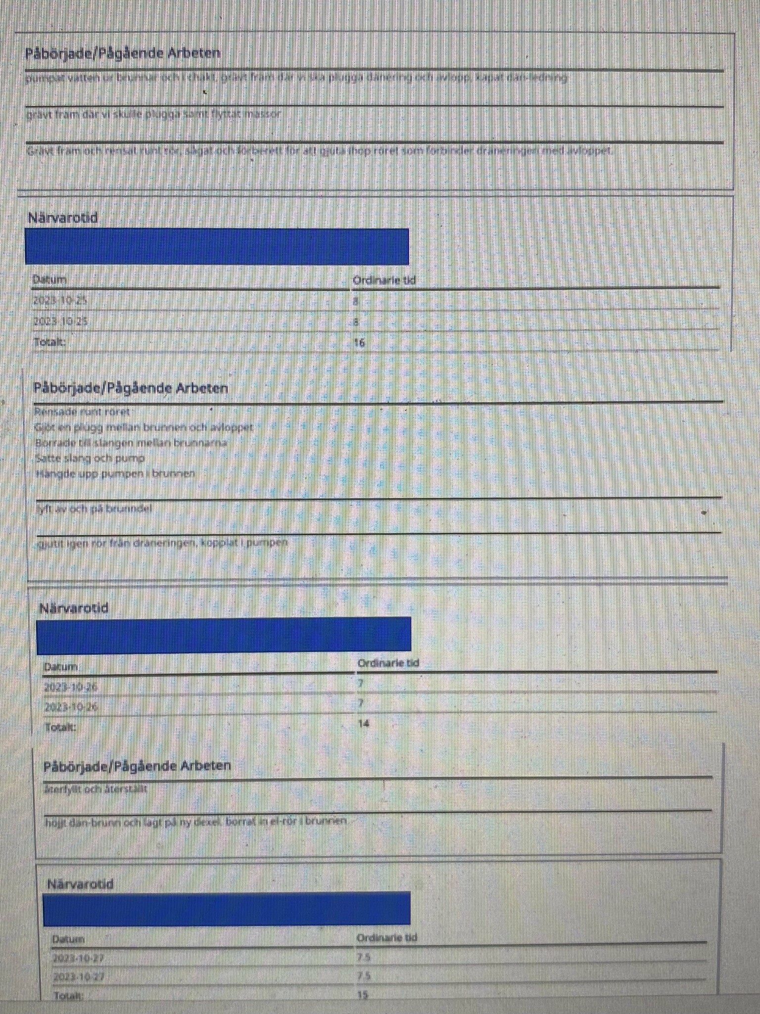 Här är ett exempel för 3 av totalt 6 dagarna. Jag har alltså fått en spec då jag frågade efter den så det är inte det som är problemet. Inte heller att man inte tillbringat tiden. Utan snarast att det tagit lång tid.S sepani skrev: