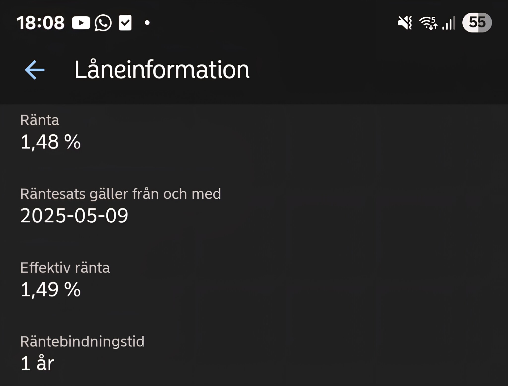 Det verkar väldigt märkligt med tanke på att Nordeas listränta för rörligt lån idag ligger på ca 4,04 %, och snitträntan för nya lån ligger runt 3 % beroende på bindningstid och belåning. Även om man får rabatter, känns det svårt att förstå hur en så låg ränta som 1,70 % ens är möjlig under våren/sommaren 2025, särskilt vid hög belåningsgrad.