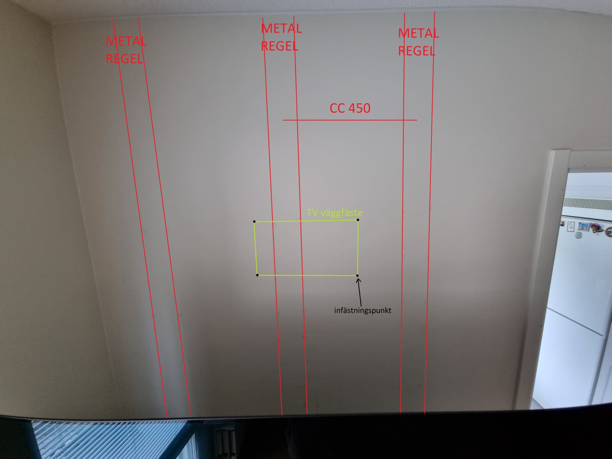 Jag tänker att sätta min TV på väggen och problem är att mittregeln inte är mitt på väggen. Tv:n är också tung (med väggfästet väger den ca 32 kg).