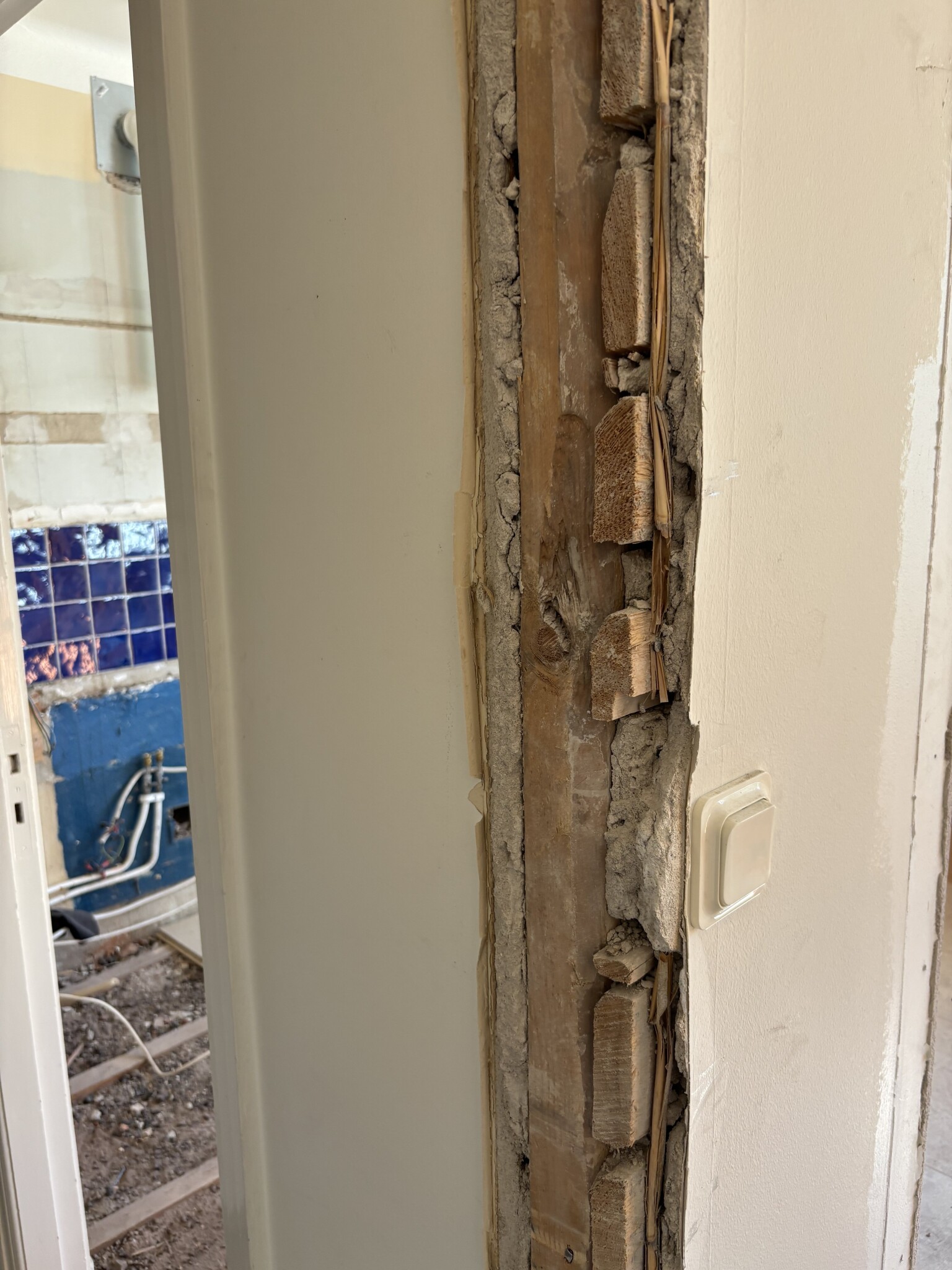 Vi har köpt en lägenhet från 1930 som vi håller på att renovera. På väggarna sitter idag tapet och innanför är det antingen: