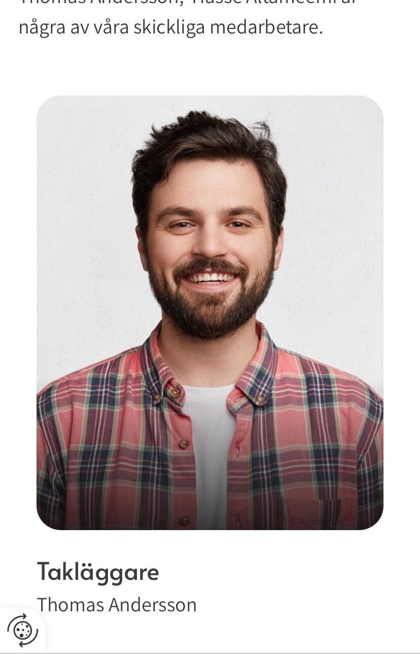 Den här plåtfirman har gjort ny hemsida där man har en Ai genererad plåtslagare som heter Tomas Andersson. Helt sjukt att man träffat sånna bedragare. Men nu måste vi ju betala notan.