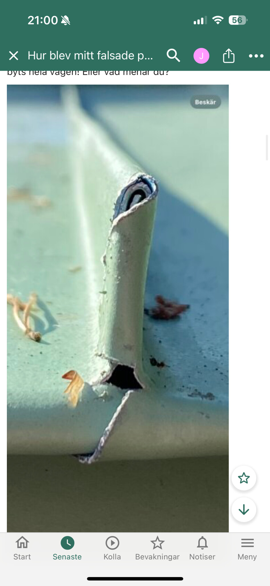 Besiktningsmannen sa nu på besiktningen att det falsade plåttaket anses inte vara ett tätskikt. Så det är okej att det rinner vatten igenom och ner på ytskiktet under och sedan ut i hängrännan. Plåten ska endast ses som ett skydd mot solen. Och att hålla skiktet under på plats. Låter hur snurrigt som helst men eftersom han godkände taket så kan jag inte göra någonting annat än betala för skiten. Men han låter som han är hög!J Jansson69 skrev:Ja och jag har som tidigare svarat att denne klopare som har gjort detta aldrig skulle platsa på dom plåtslagerierna jag har använt..