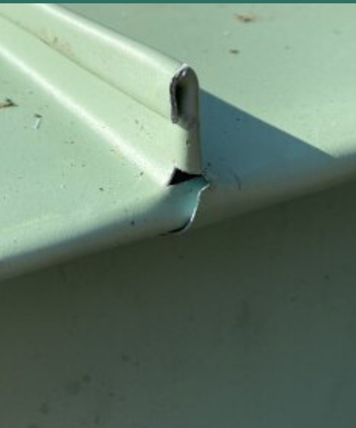 Dessa bilder visar allt att alla falsändar är öppna säger att det är en klopare av rang som har utfört arbetet för dom är ju helt öppna för vatten att tränga in, det är uppenbart att det inte är en plåtslagare som utfört dessa..