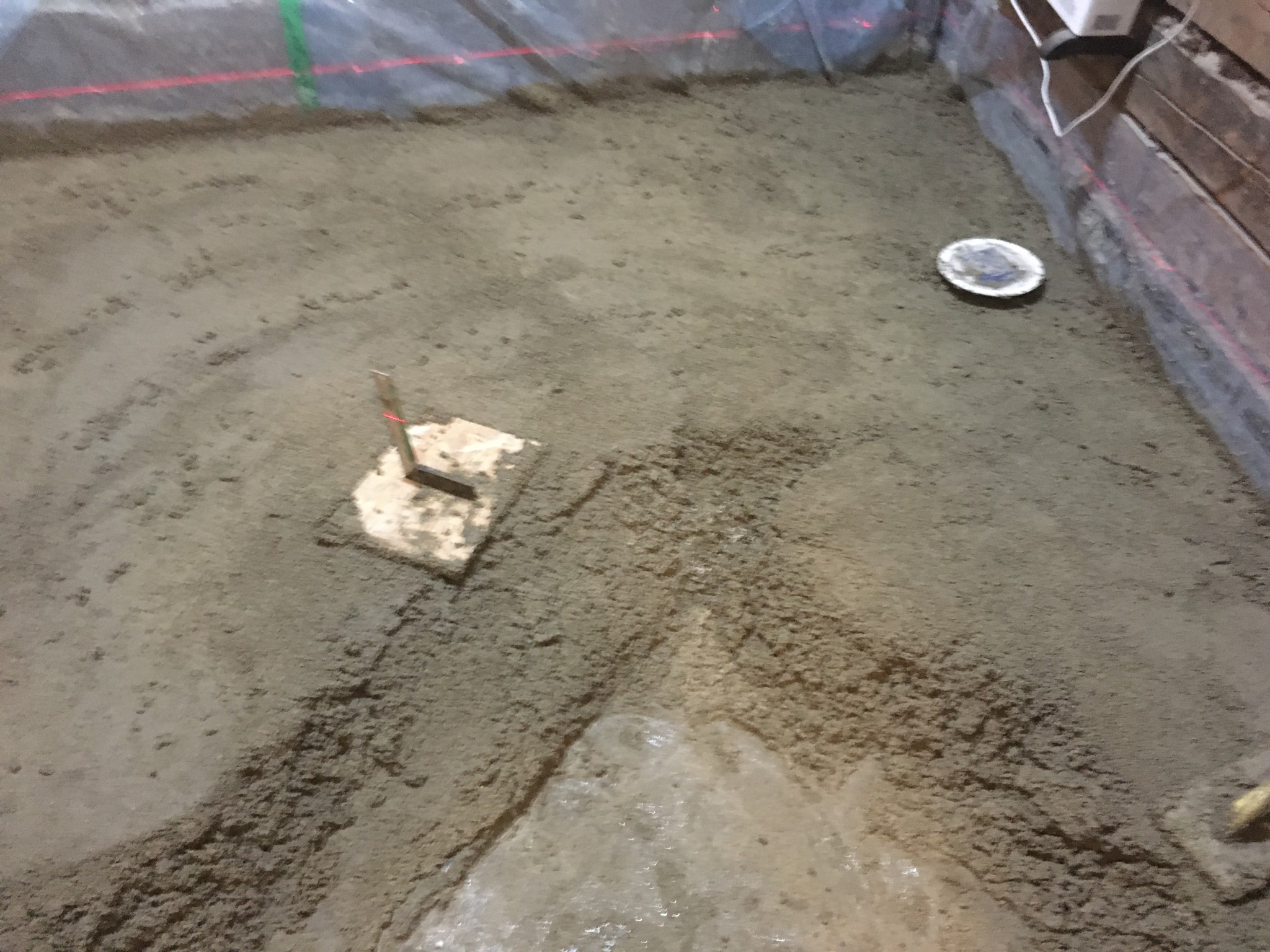 Jag lämnade ca 3 cm under avloppsburnnen för flytspackel och värmesliingor om jag minns rätt.