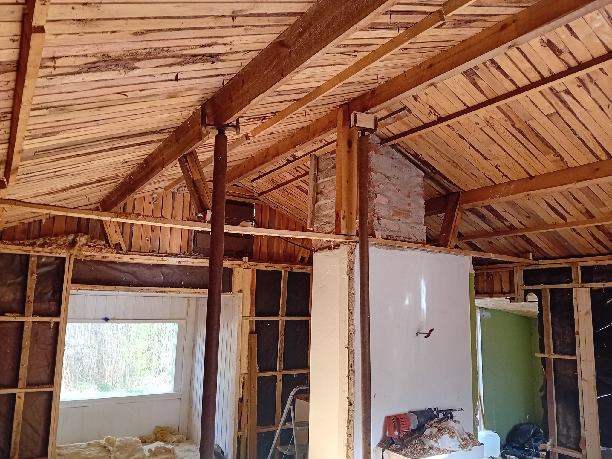 Uppenbarligen står ju huset fortfarande sen det byggdes -57, och förr hade det pannor, men har plåt nu. Jag vill isolera mot taket så jag vill vara säker på att det orkar.