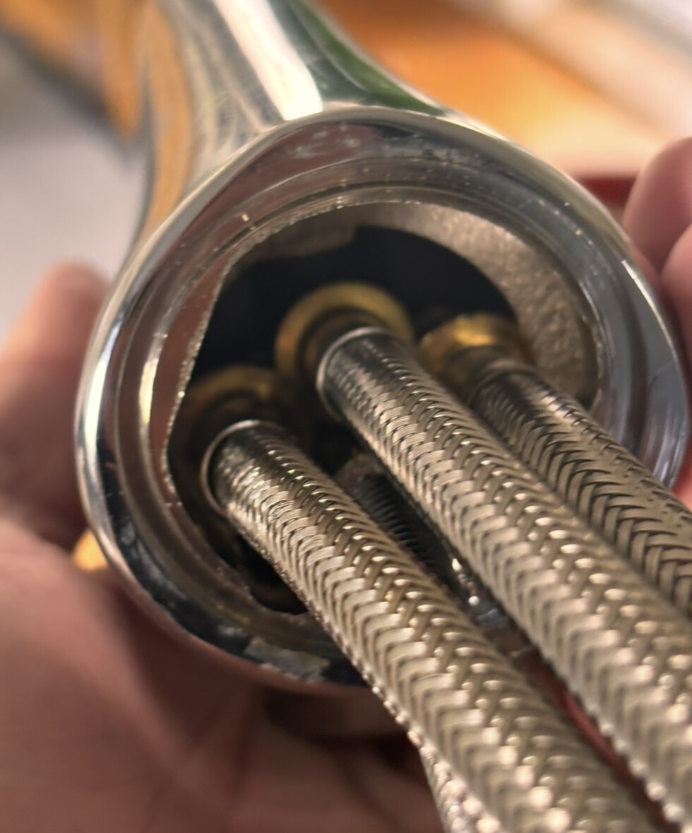 Jag har två flexslangar med rätt dimension men jag fattar inte hur jag ska få loss slangarna från blandaren så jag kan sätta dit de med rätt dimension.
