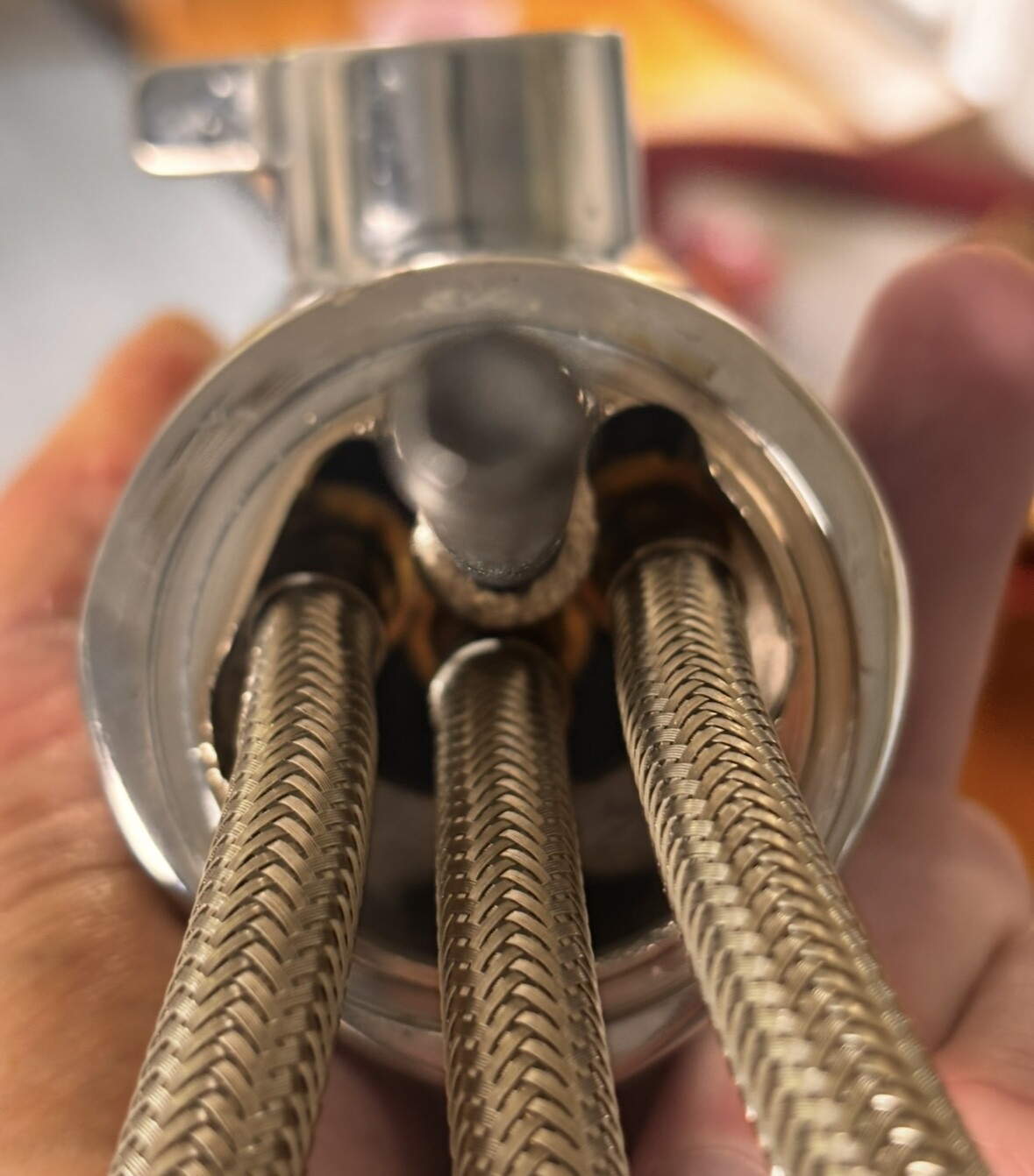 Jag har tagit loss allt jag kunde, men flexslangarna sitter fast i en svart plastplatta som jag inte får loss heller…