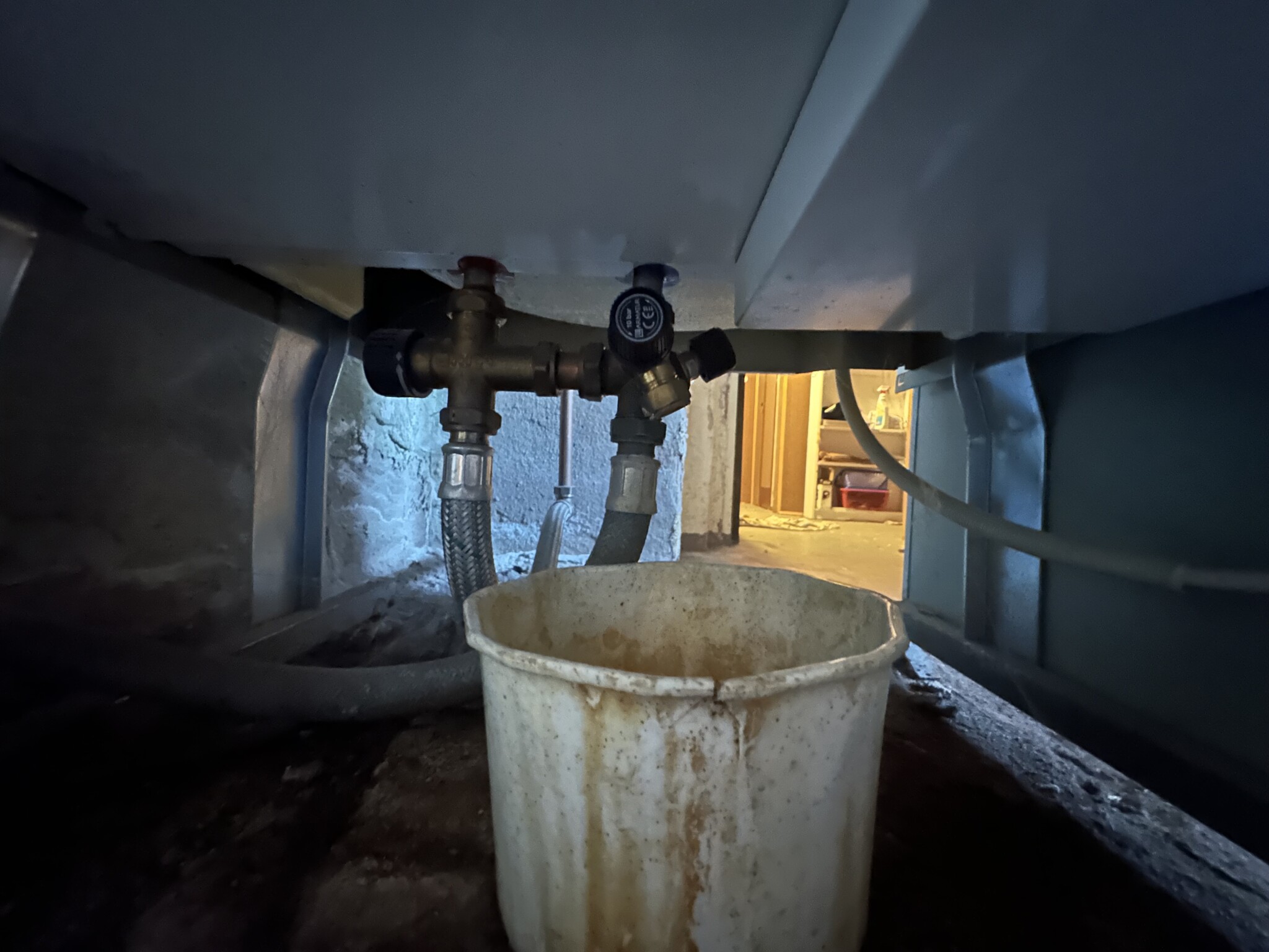 Avtappningen bör egentligen vara kopplad till avlopp men detta funkar också...så länge man kommer ihåg att tömma krukan.