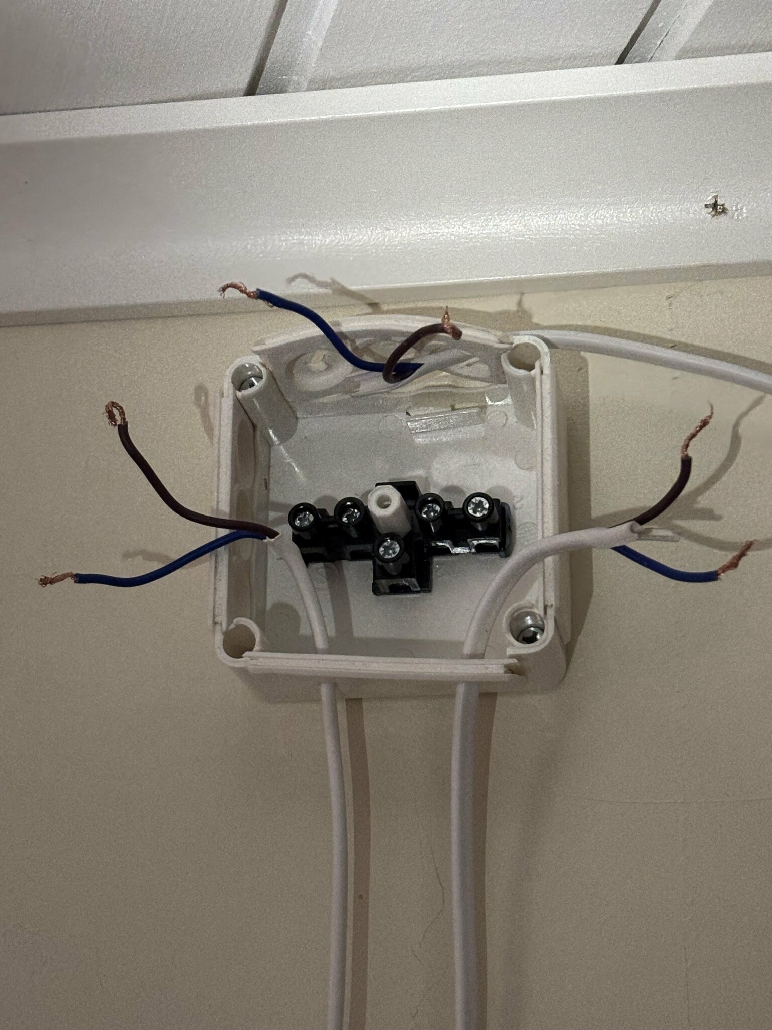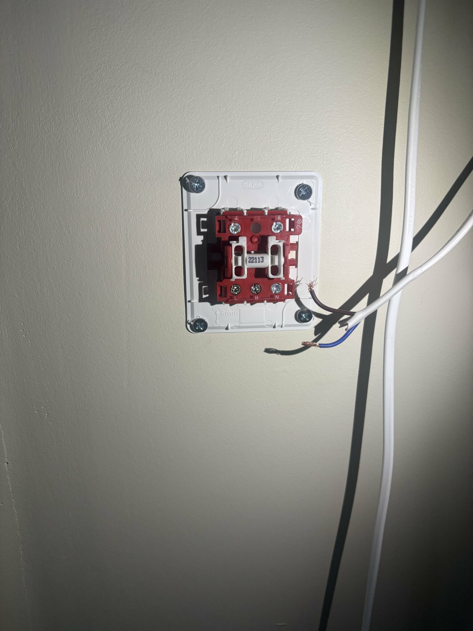 Med en blå och en brun ledare ner till brytaren måste blå användas till fas eller tändtråd, och det kommer inte någon tycka är en bra idé.