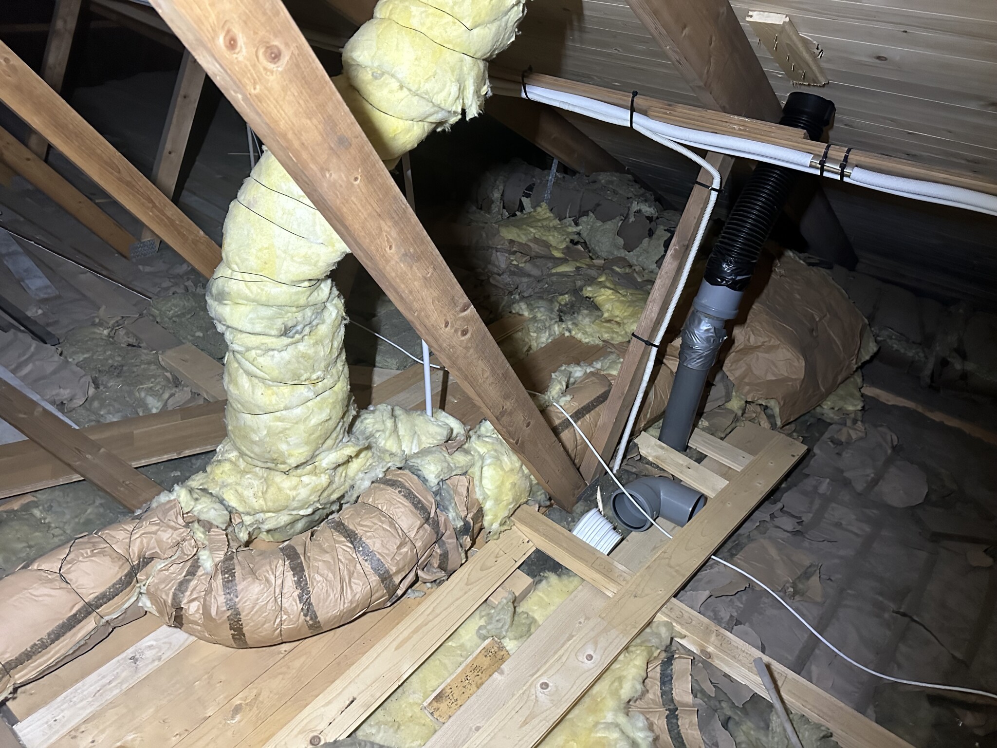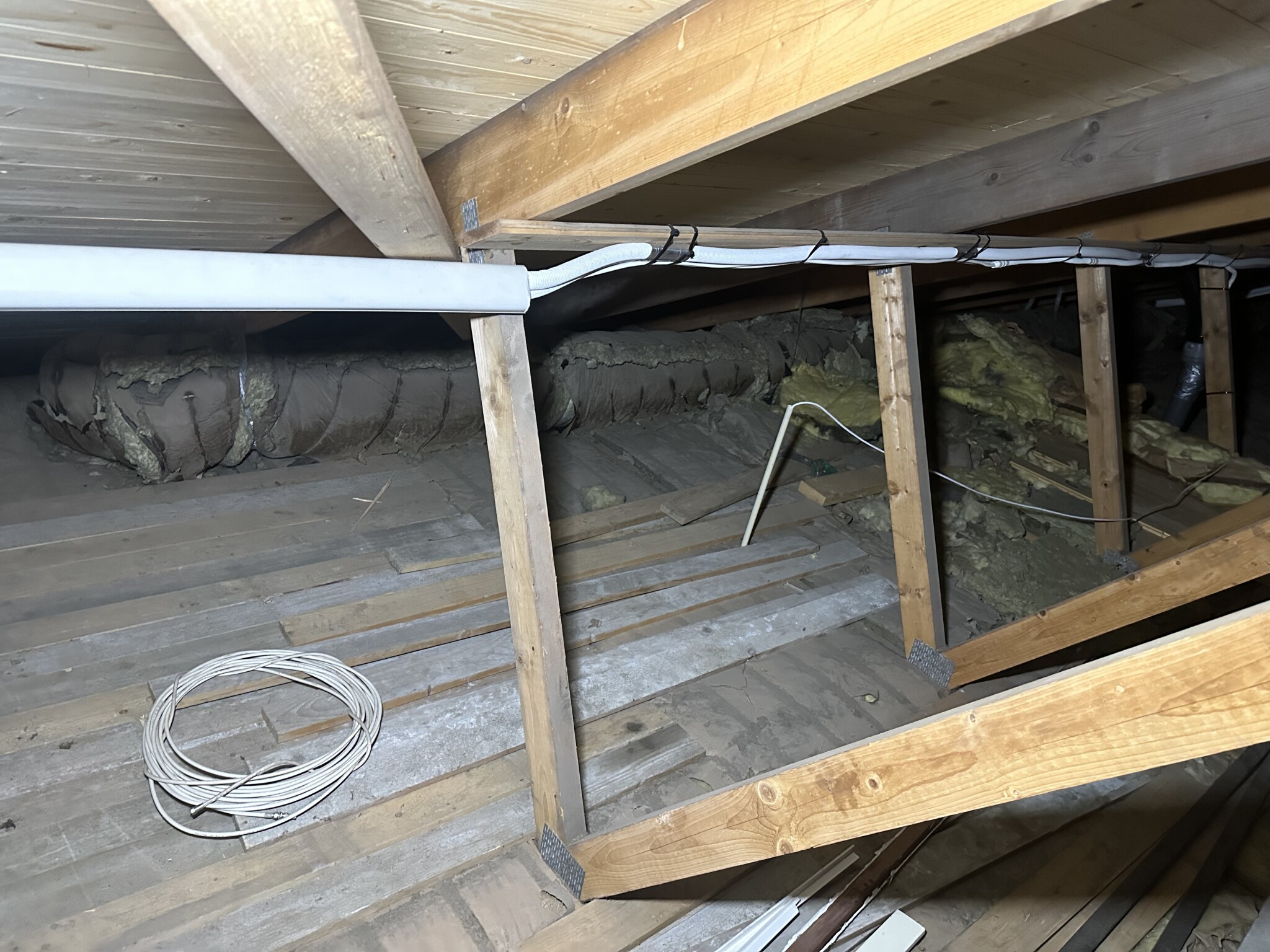 Jag förstår, då är det redan isolerat i stor utsträckning på vinden. Kan bifoga nån bilder till här genom telefonen nu, som man kan se så har där suttit något inkopplat men fick ingen info av föregående ägare