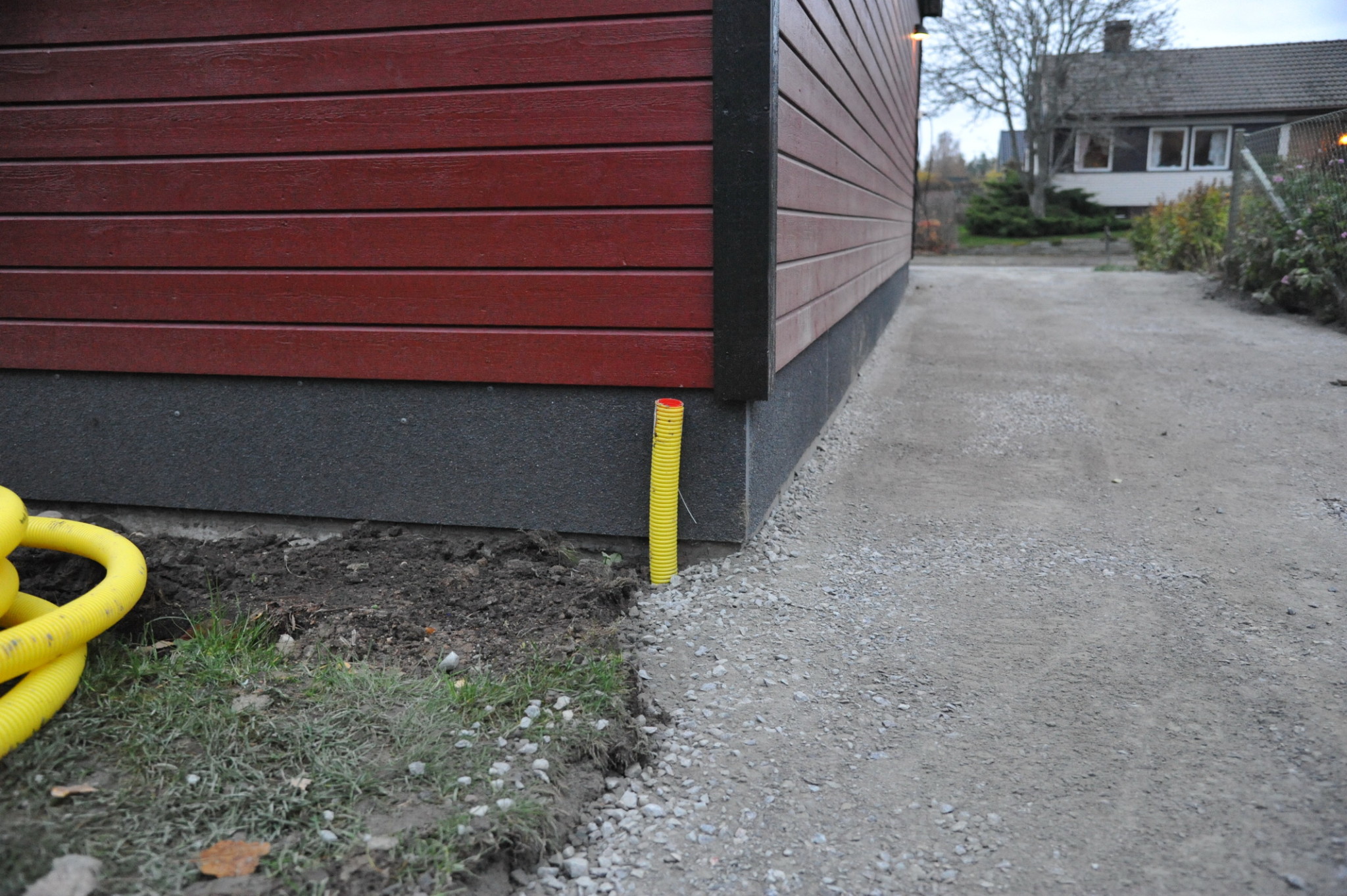Det verkar alltså som att man brukar kapa röret i markhöjd, och sen leta sig igenom väggen med kablarna på lämpligt sätt. Det jag inte riktigt får ihop, är hur övergången mellan 50mm-röret och de dragna kablarna/kabelskyddet ska se ut. I min ”lekmannavärld” kommer det bli en stor öppning i röret som kommer att släppa in både vatten och jord etc om det inte tätas, vilket det självklart måste göras. Men ändå – ingen snygg övergång mellan rör och kabelskydd känns det som. Vad jag fått fram, finns det kabelskydd på 68mm. Ett sådant skulle täcka plaströret och man skulle även kunna smida till ovankanten så det blir tätt och snyggt. Vad tror ni om det?