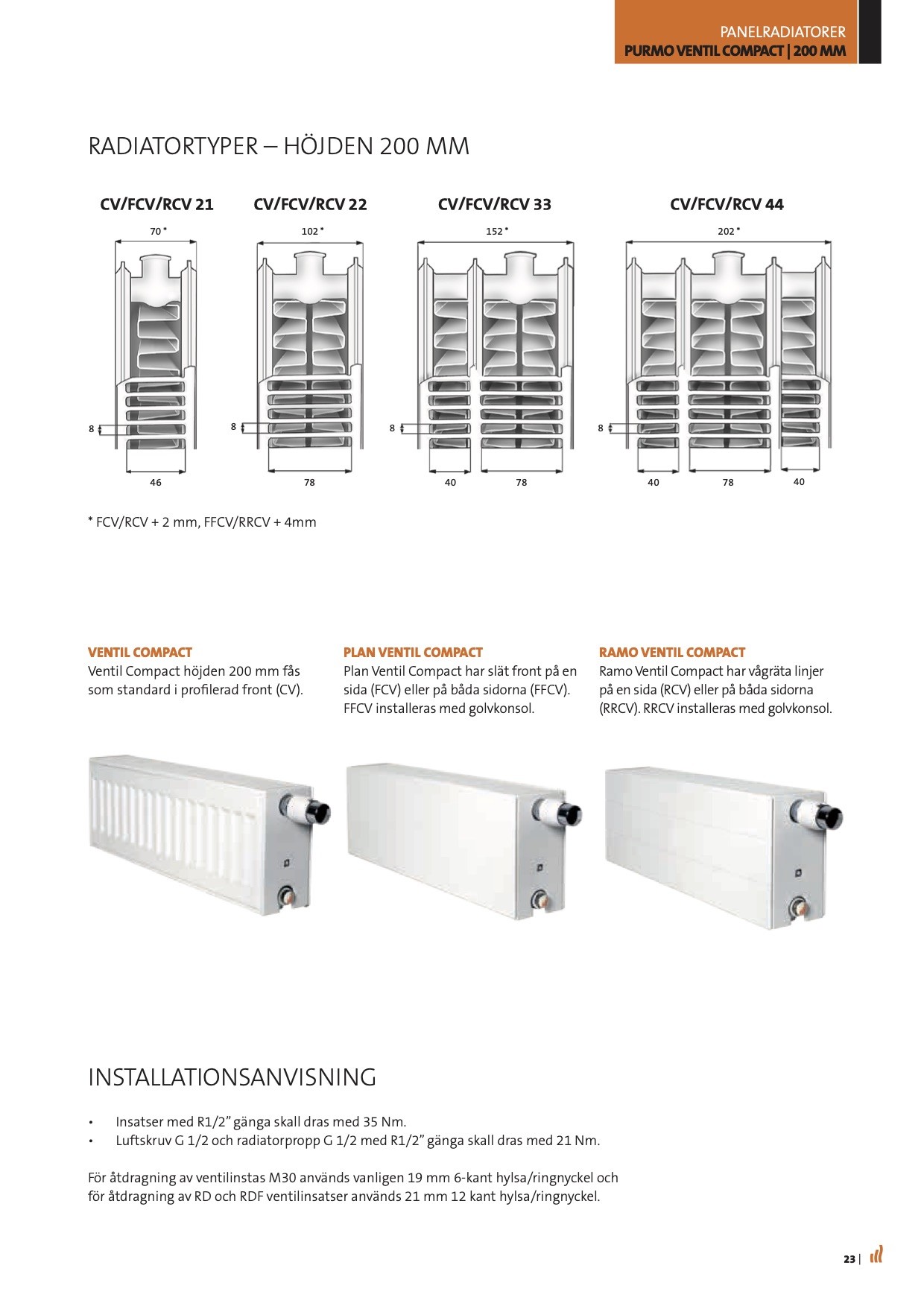Här är information om den nya. Purmo RCV44 (längd 800) har stöd för bottenkoppling, sido och diagonal. Dock ligger den i en annan höjd och har större djup.