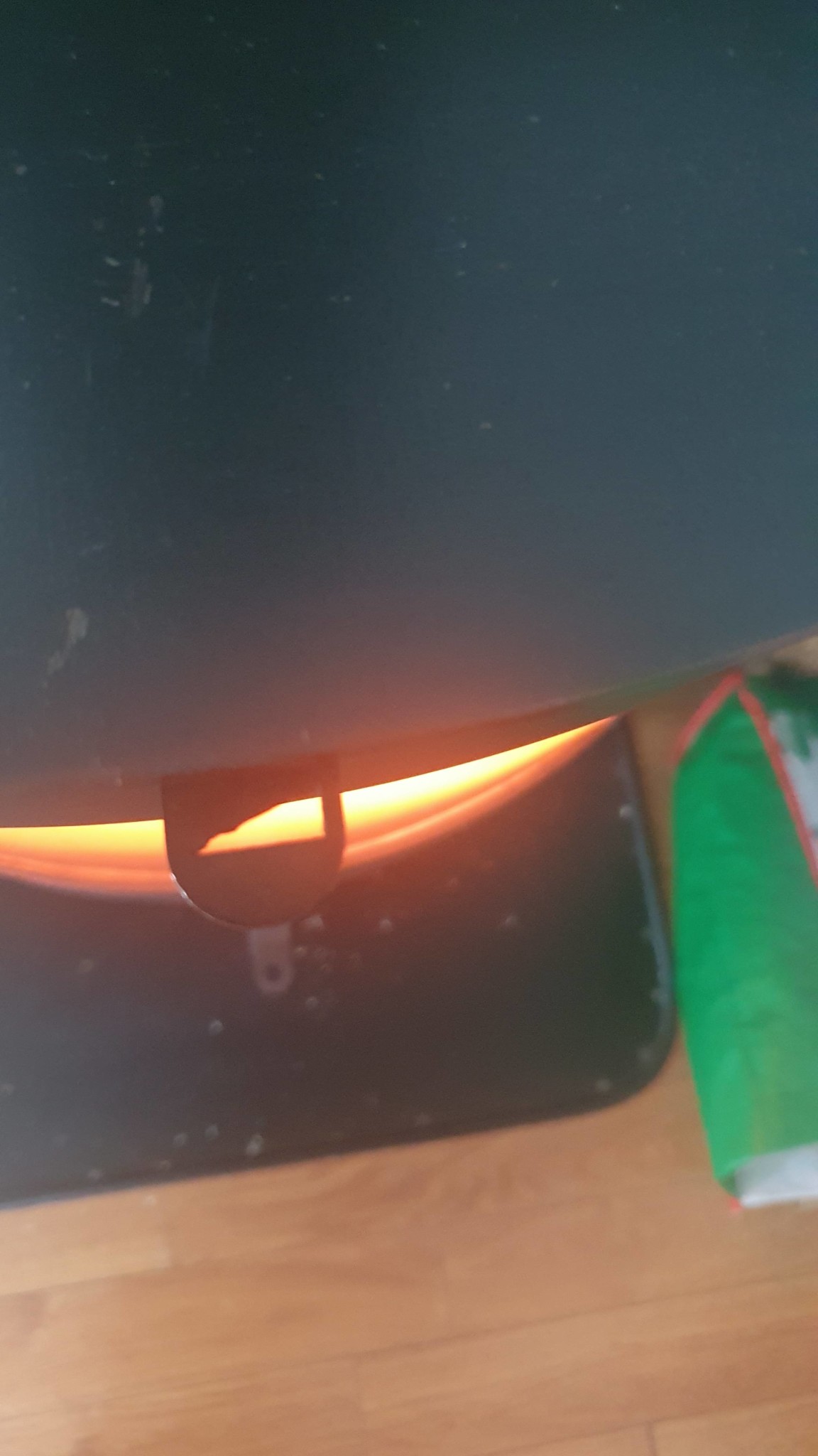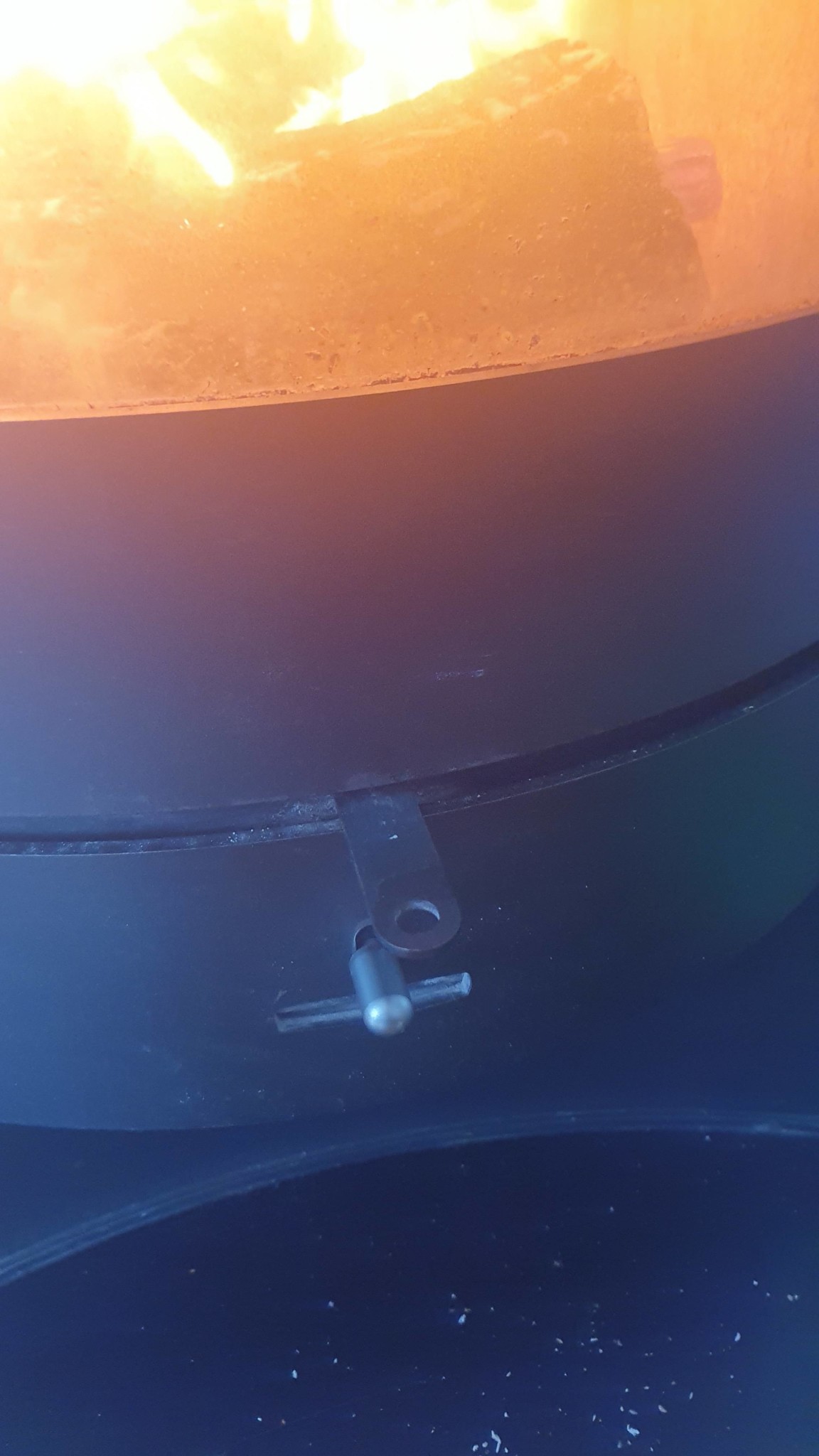 Sen finns det en "spak" som man kan dra in och ut som jag inte blir klok på. Den gör att en rund platta i botten av kaminen snurrar lite när man rör på den. Dock vet jag inte om den ska vara utdragen eller intryckt.