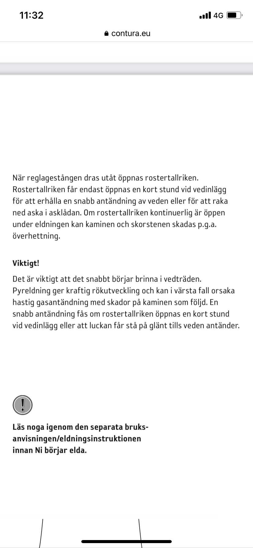 Det är inte ett tändspjäll, dvs något du endast har öppet till elden tagits sig?A Anna Andersson5 skrev:Hej, bor i ett gammalt hus där jag först senaste året börjat utnyttja kaminen till fullo (pga elpriserna). Det finns ingen bruksanvisning till kaminen och heller inget namn på den. Jag skulle gärna vilja ha tips på hur tillförseln ska regleras för att det ska bli så effektiv uppvärmning som möjligt!