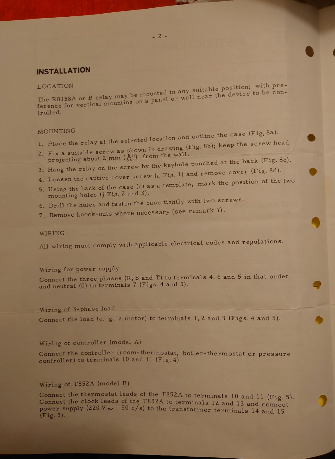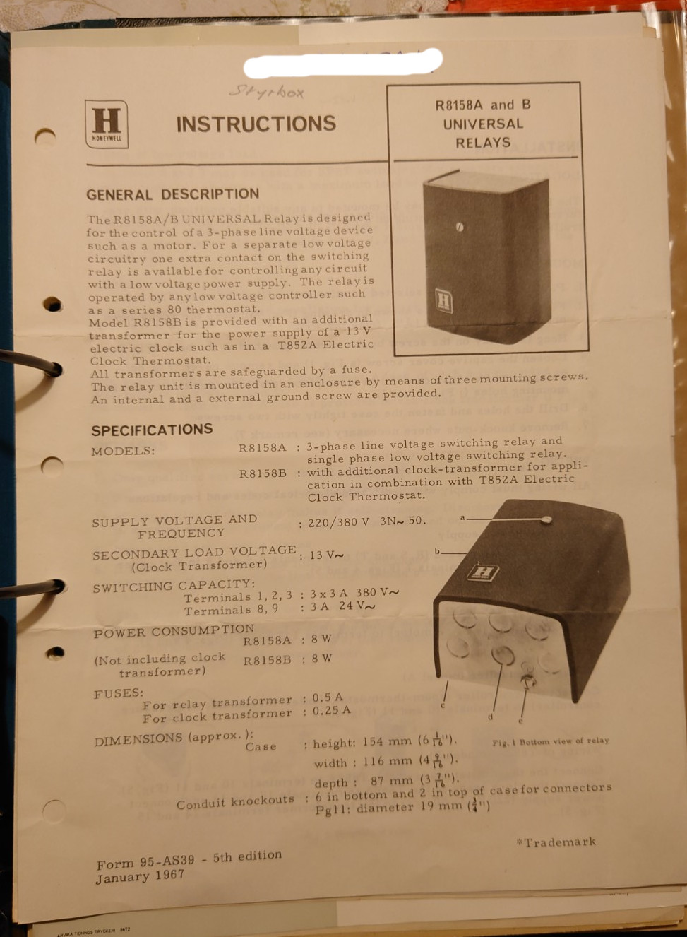 Som ses på databladet verkar reläet arbeta ihop med termostaten (T852A) från samma år.
