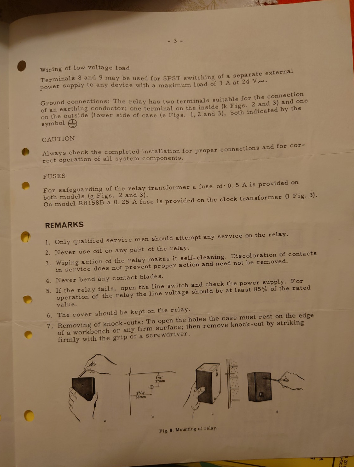 Honeywell R8158B Universal Relay - 3-phase line voltage switching relay and single phase low voltage switching relay with additional clock-transformer for application with T852A Electric Clock Thermostat.
