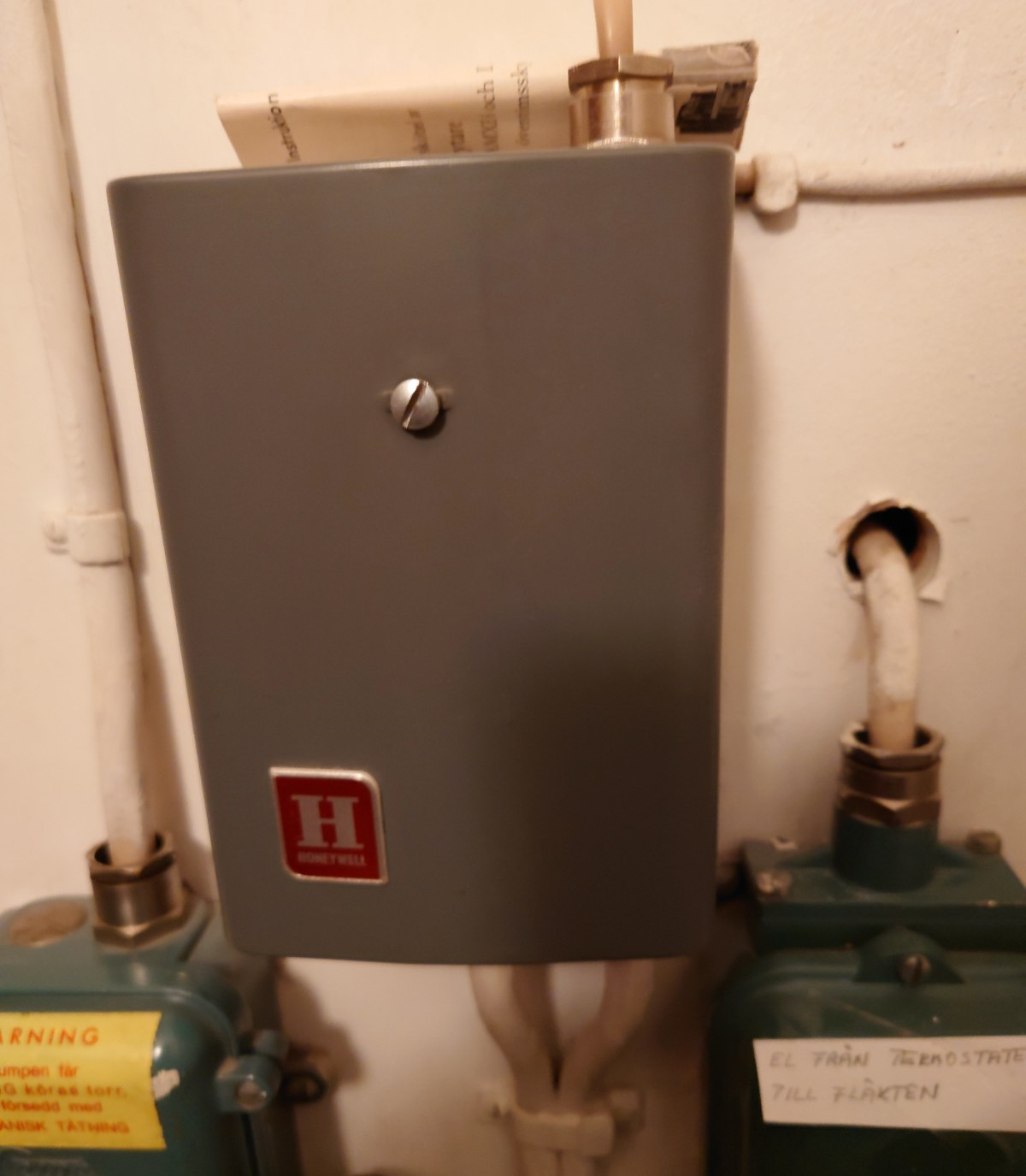 För någon vecka sedan gick deras värmesystem sönder. De tog då in en elektriker som tittade på det och kom fram till att det var deras gamla spänningsrelä (från 1967) som hade gått sönder. Jag kallar det spänningsrelä - det heter egentligen enligt databladet (ja, de har det kvar):