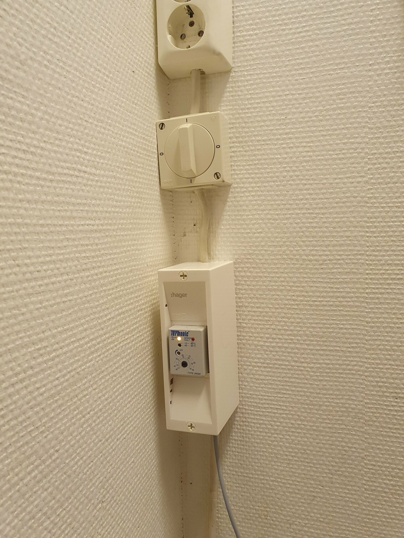 Jag kapar tråden då jag har skaffat samma termostat. I nuläget sitter där en vridbrytare med vilken man slår av/på kabeln och den ska jag ha kvar, men tänkte montera denna termostat mellan brytaren och värmekabeln.