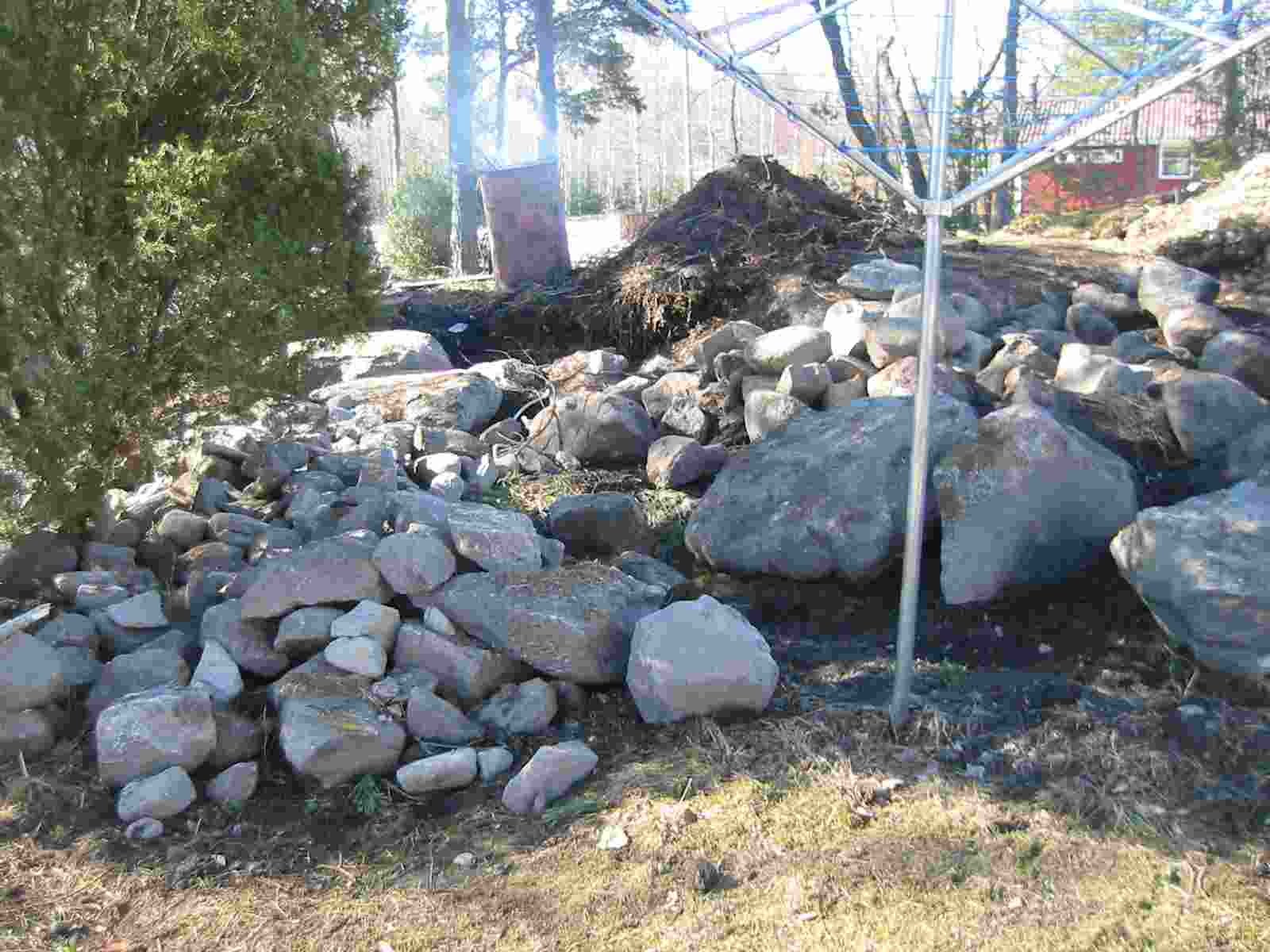 All sten är nu borta, utom den stora. Den kommer också att få en omgång av cobran. Det var mitt "GYM". Borra, snigel, järnspett och spade. De större som inte gick att lyfta och få ner på andra sidan berget. Pirra med en träram och dra. Det går.