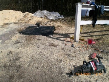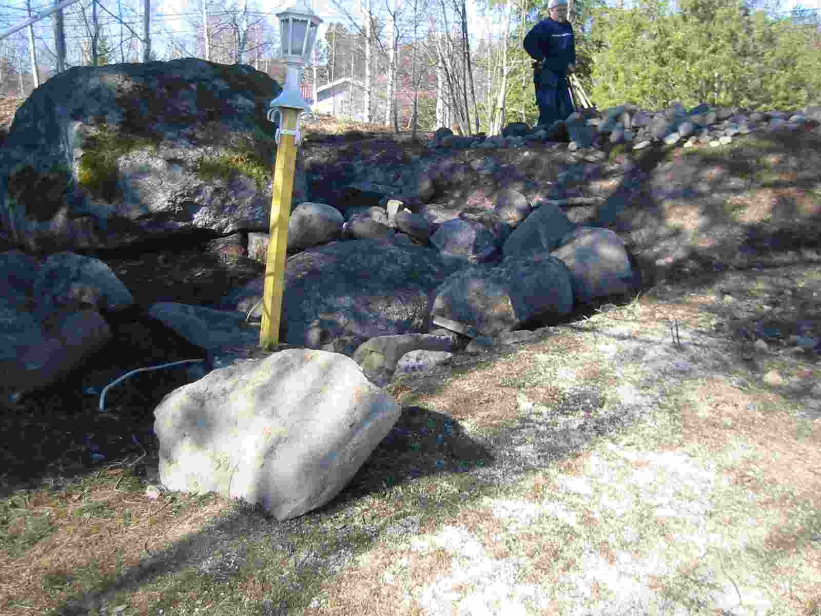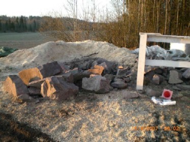 Den stora jordstenen ska också bort. Har eldat en hel del fulved mm. mot stenen och det har lostnat den del större bitar.