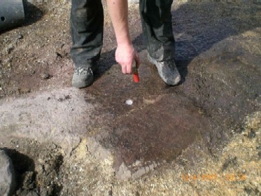 10-12 kvm sänkte vi med i snitt ca. 40 cm på en lång fredag och en halv lördag, 3 personer. Då tog borrningen säkert 4 gånger så lång tid som det borde göra. 22 borrhål, 48 skott och en massa rensande med spett och bilmaskin var det som behövdes. En metod som jag varmt kan rekomendera där man inte behöver ha järnkoll på vad som försvinner och var det hamnar, effektiv och ett nöje för vuxna pojkar!