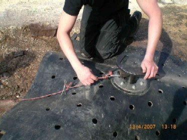 Hål borras med Cobran på lämpliga ställen. En form av laddning skickas ner i hålet som sen fylls med vatten. Eller om det var tvärtom..... En tjockare gummimatta som har ett hål i mitten läggs över så hålet kommer rakt över det borrade hålet. I hålet i gummimattan skruvas sen nån tingest fast som en tändhatt. Från denna drar man tydligen en tråd som man sen på behörigt avstånd rycker i och hela härligheten flyger i luften.