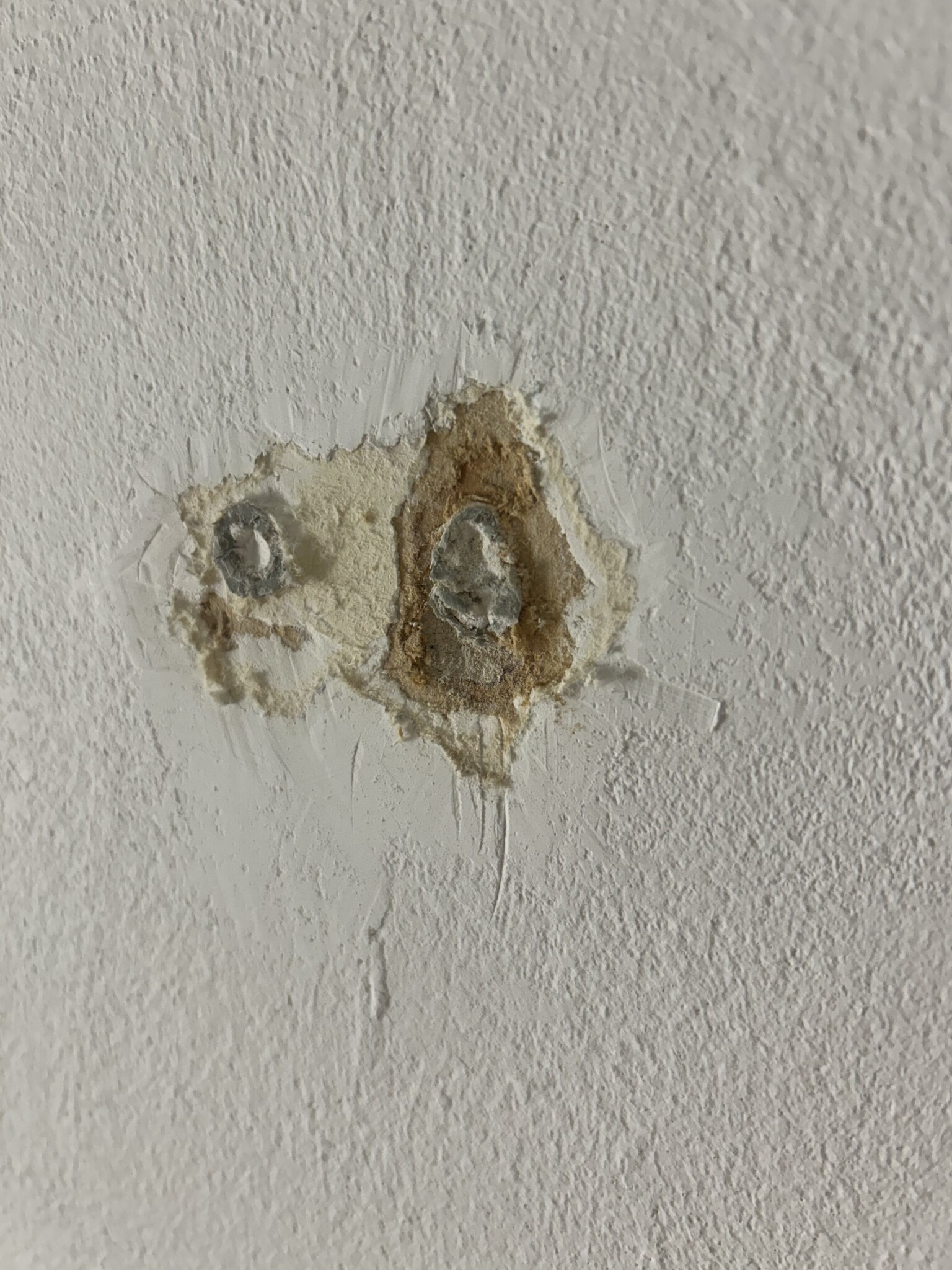 Vi ska bredspackla och måla om, idag är det ”bucklor” i väggen och när jag skrapade bort färg/spackel kommer dessa fram. Ser ut som pluggar om jag förstår rätt? Problemet är att några sticker ut i väggen så går ej att spackla över smidigt. De sitter som berget också känns svårt att få ut. Finns de något som kan slipa det det?
