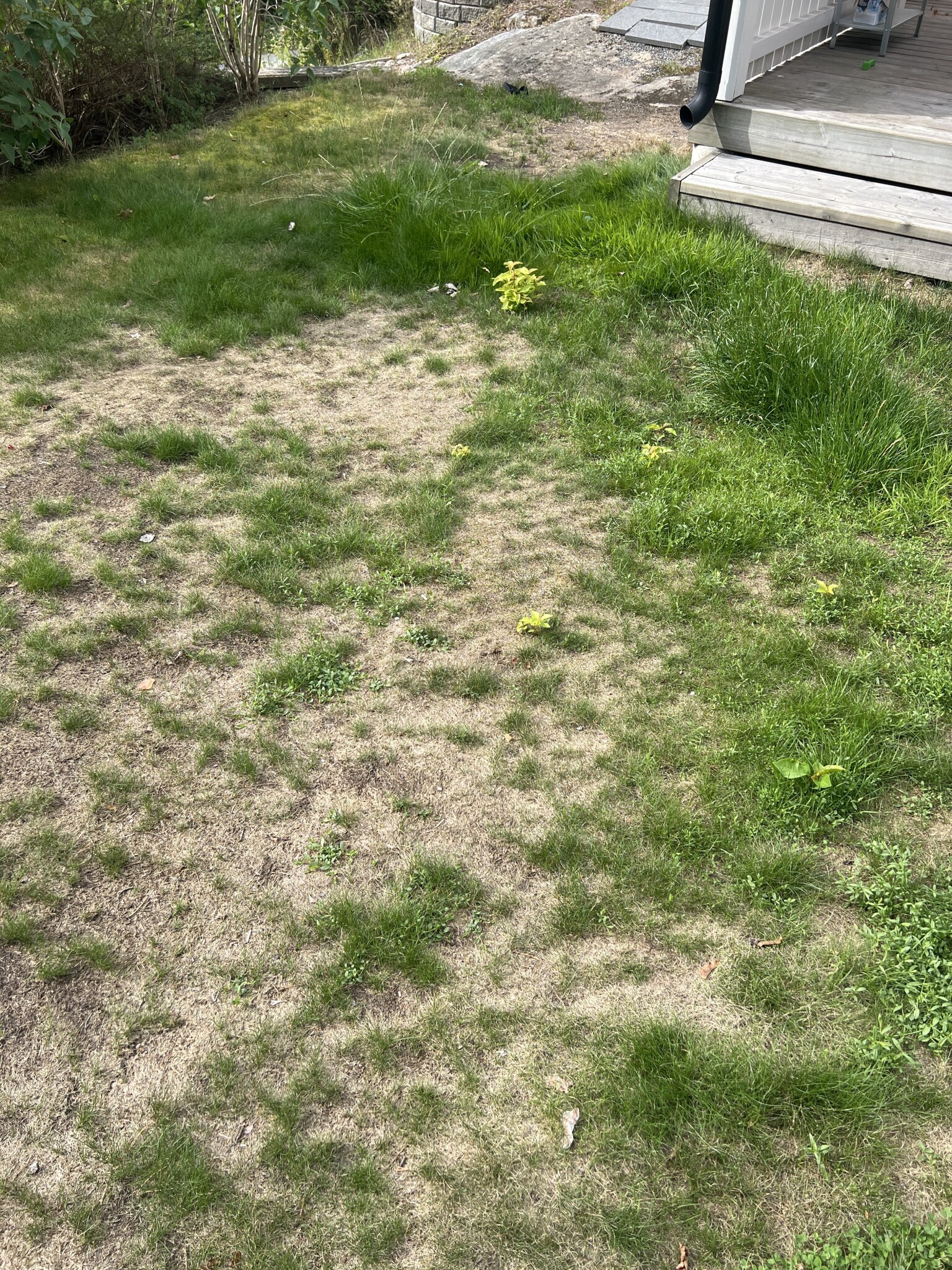 Första sommaren i nytt hus, osäker på hur den brukade se ut men kombination av ihärdig fotbollsspelande i våras och 5v iväg har gett oss det här… Vad gör man för att skapa en härlig matta?