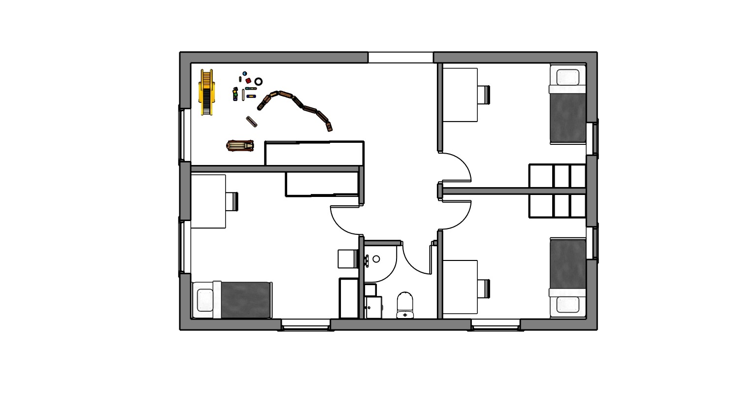 Vi behöver 3 sovrum på övervåning och ett badrum. Det ska gärna vara estetiskt från utsidan med symmetri på fönstrena men det får heller inte finnas något fönster i duschen.