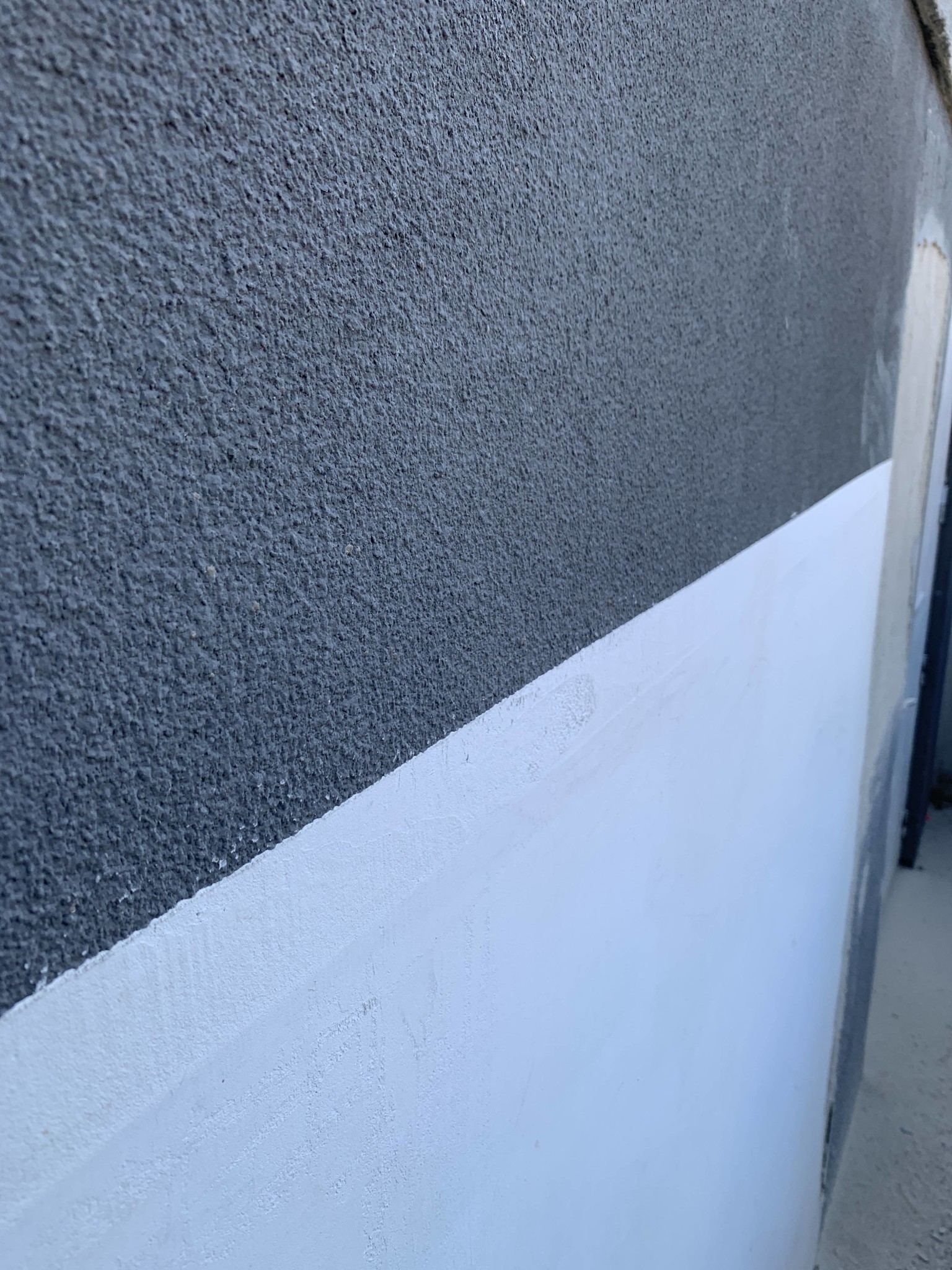 Jag tror att på bild 1 har de kanske sprutat på, men på bild 2 så är det handjobbat då det är en gammal igenmurad garageport..