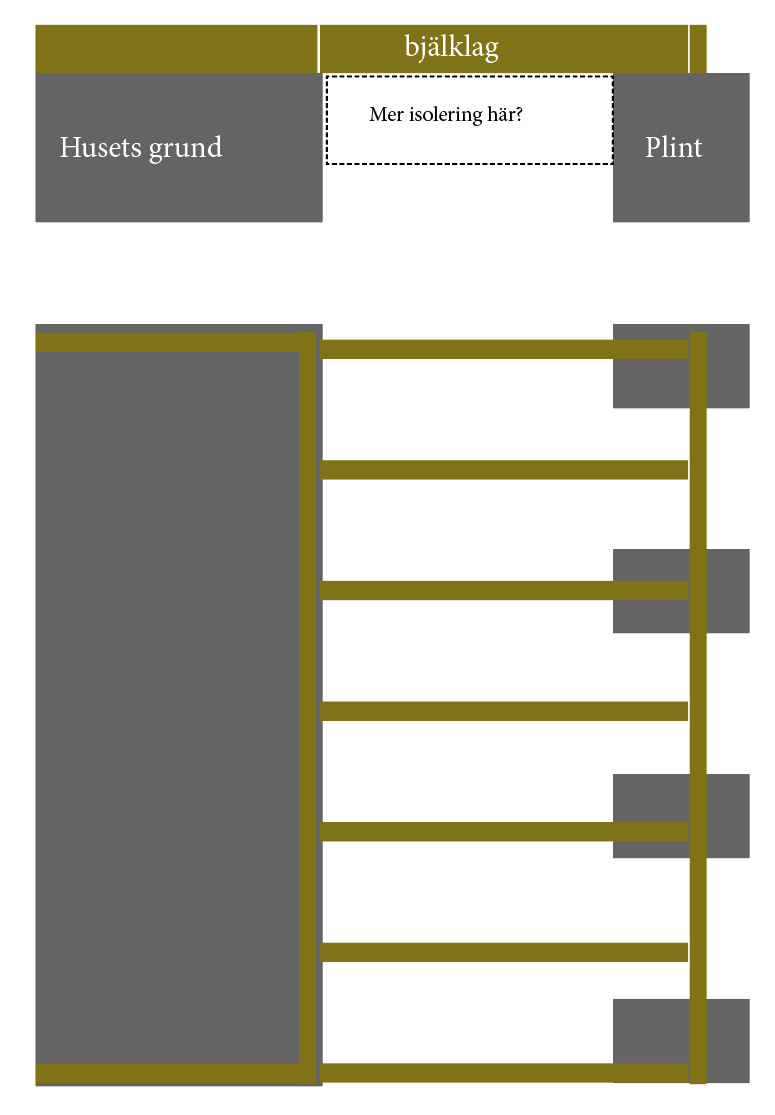 hej, jag ska bygga ut över plintgrund och skulle vilja ha mer isolering än vad bjälklaget med 150mm tillåter.