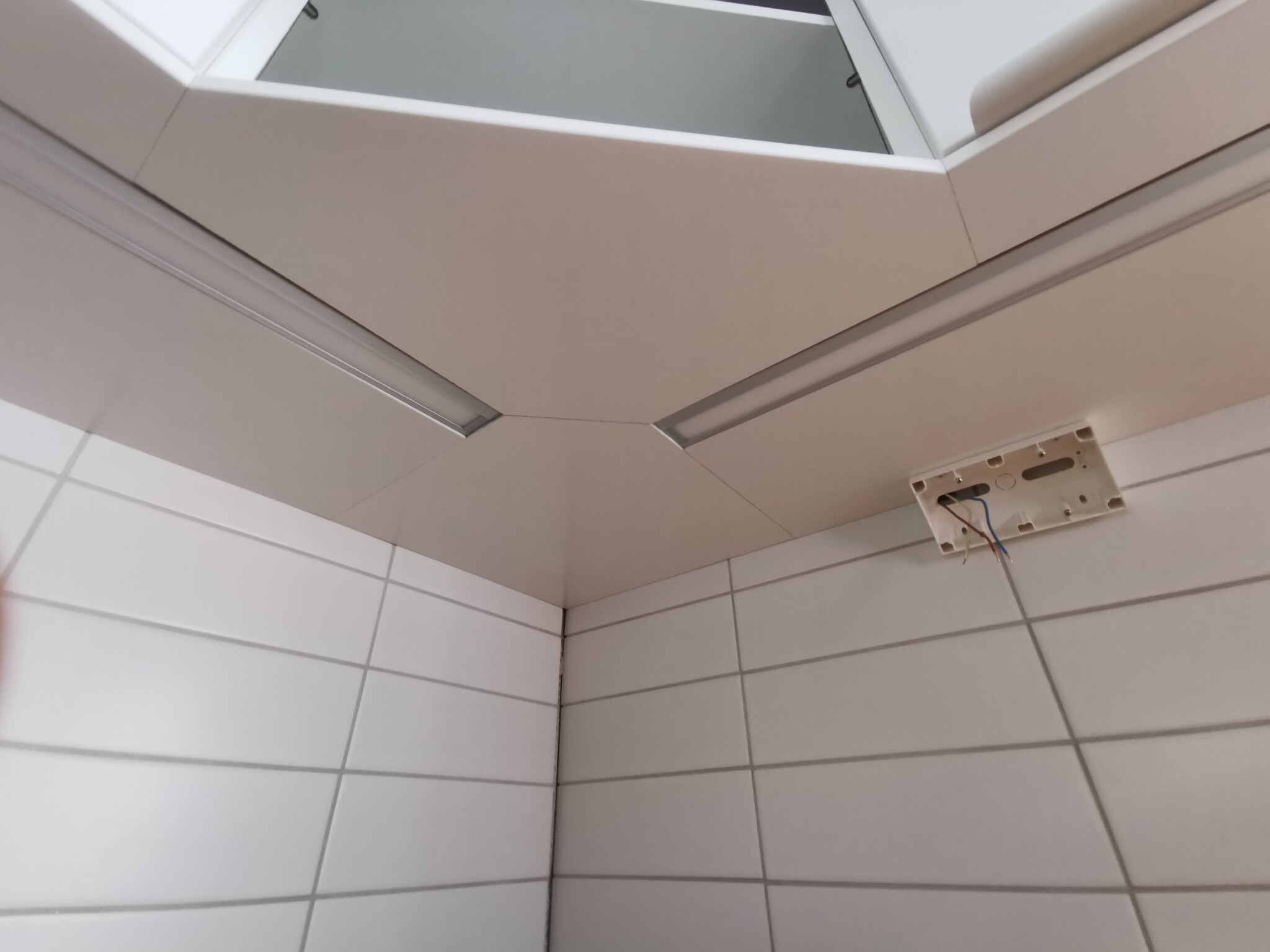 Blev såhär.K Kardan79 skrev:Jag har införskaffat en vettig smygvinkel, för att kunna få till vinkeln i innerhörnet någorlunda (är INTE 90 grader). Kommer försöka använda kartong initialt, för att sedan skapa två mallar i masonit. En som går från ytter-/framkant till framkant på armaturerna, och en rak linje mellan armaturernas främre hörn. En som täcker övriga delar (den bakre delen).