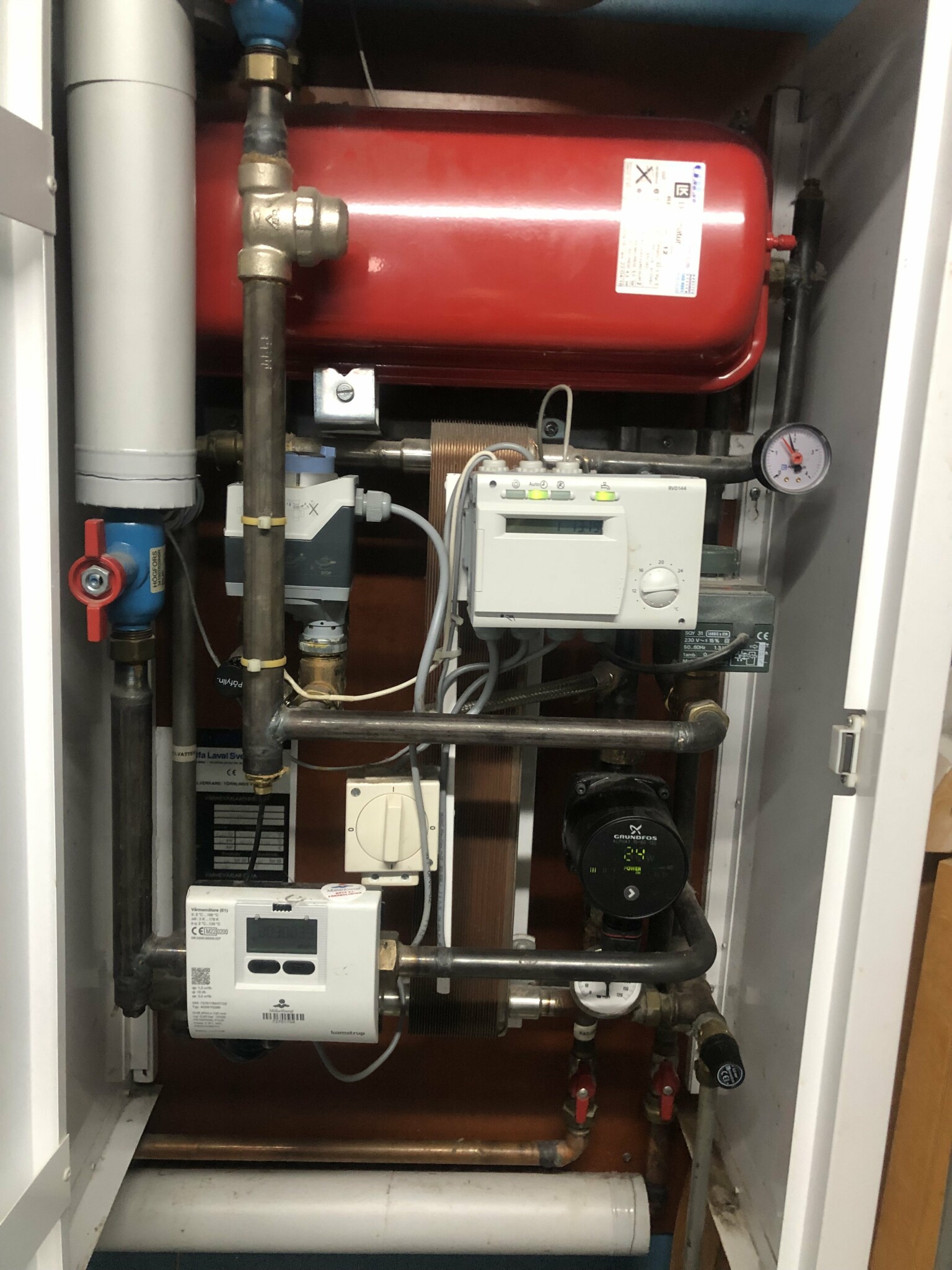 Är det fjärrvärmecentral. Ett filter kan sitta i eller utanför den.Ta foto på hur det ut, utanför så rören syns som kommer från huset och om det är en FJV hur det ser ut i den. Har du element så kan det bli magnetit ( rostförening ) och följa med runt när cirkpumpen startar igen.