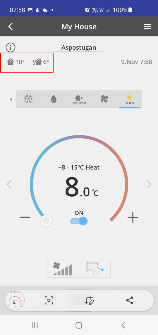 Den verkar tro att innetemp är 10C och ute 6C fast det är egentligen 12,2 C inne...